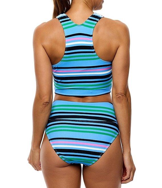 From Next by Athena, this swim bottom features: Rib knit fabrication High silhouette Stripe print Ultra wide waistband Full coverage Lined Pull-on construction Nylon/spandex Hand wash Imported