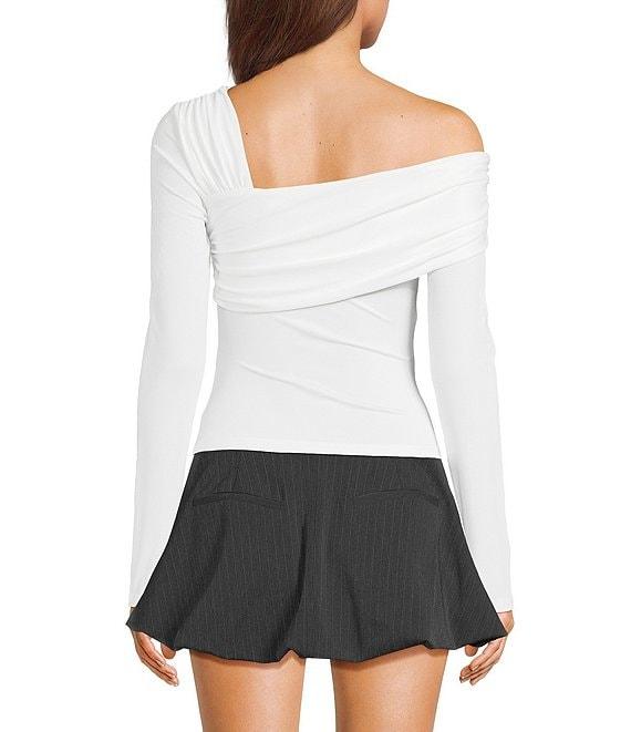 NIA Knit One Shoulder Long Sleeve Fitted Top