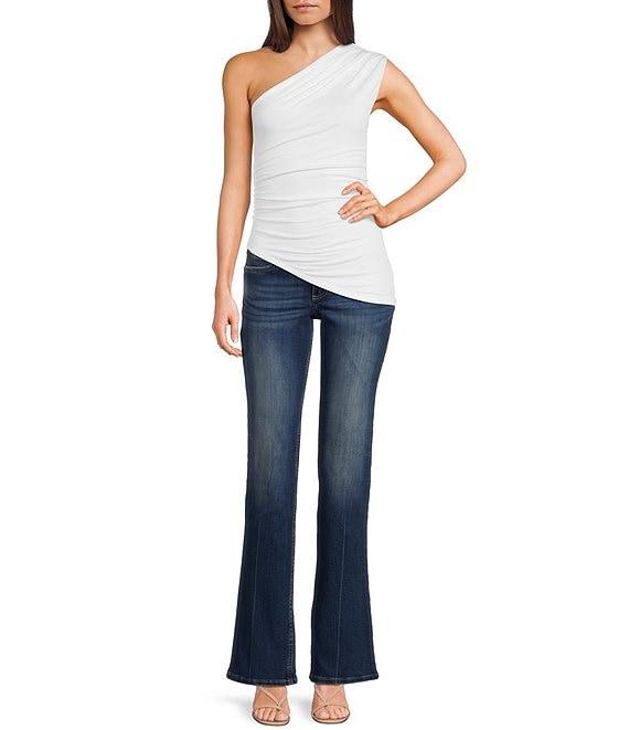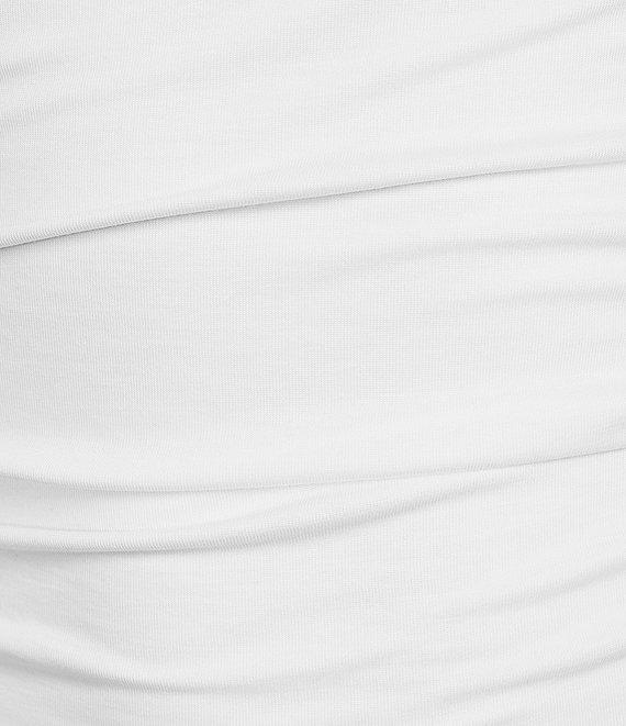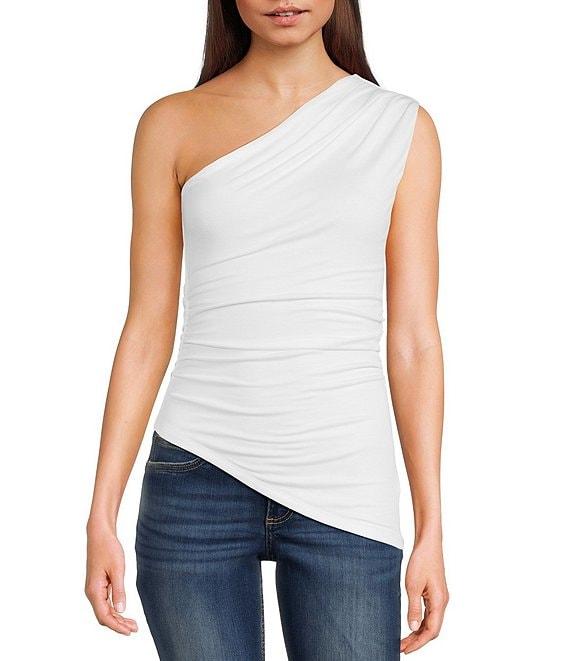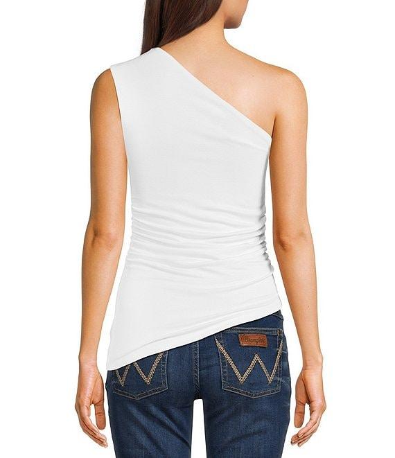 From NIA, this top features: One shoulder neckline Sleeveless Ruched Pullover styling Cotton Machine wash/line dry Imported.