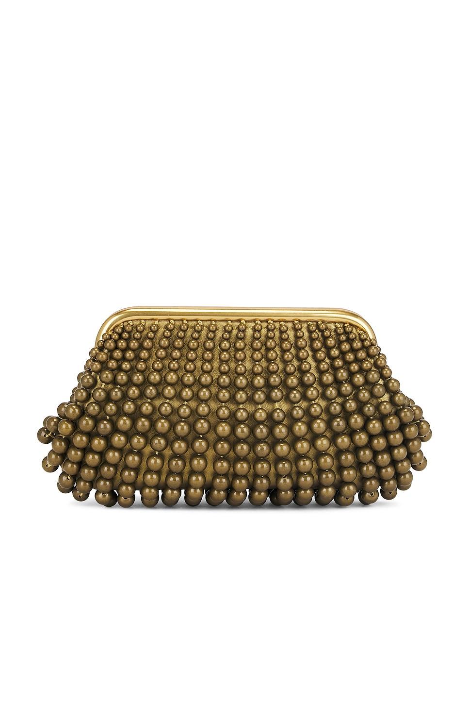 Bead embellished leather exterior with textile lining and gold-tone hardware. Top hinge closure. One main compartment. Measures approx 9.84" W x 5.71" H x 1.57" D. Made in China. Revolve Style No. CULG-WY339. Manufacturer Style No. CL1914MT2066.