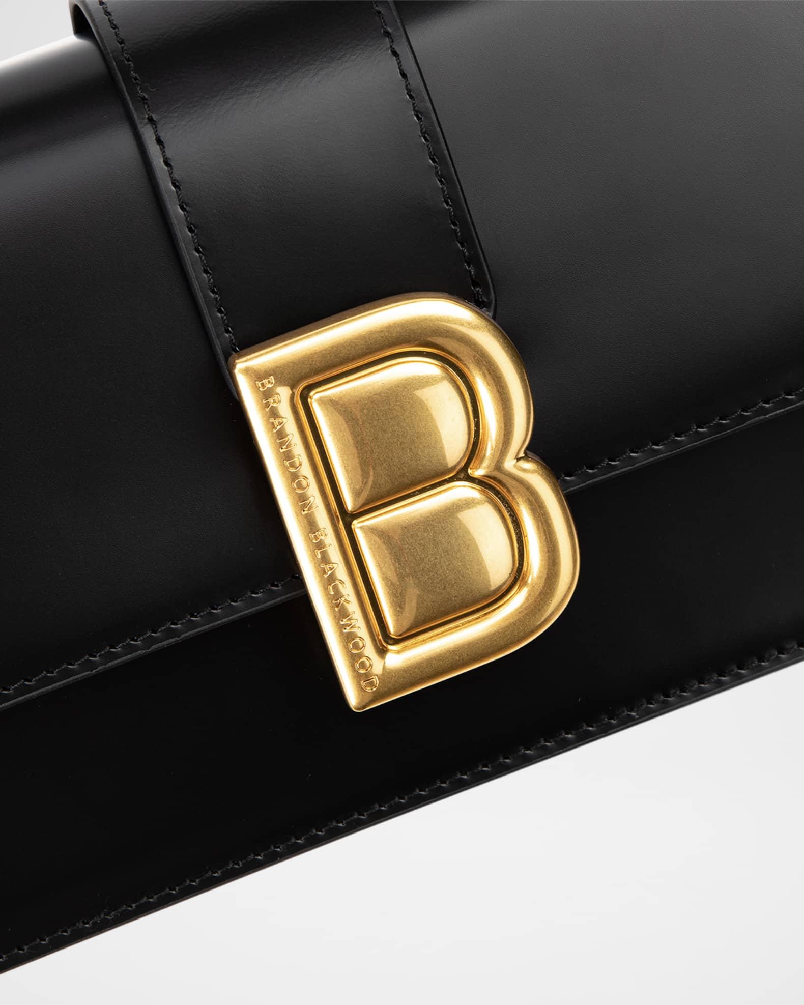 Brandon Blackwood "Nia" shoulder bag crafted in smooth leather with gold-tone brass hardware Detachable shoulder strap Can be worn as a clutch or shoulder bag Flap top with magnetic closure Interior, one slip pocket Lining: Leather Approx. 5"H x 10.6"W x 2"D Item Weight (Lbs.): 3.5 Imported