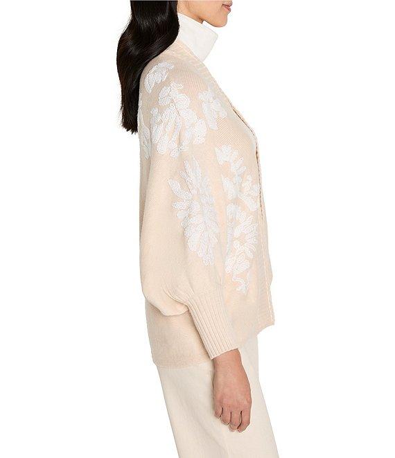 NIC + ZOE Cashmere Blend Floral Embroidered Long Sleeve Cardigan