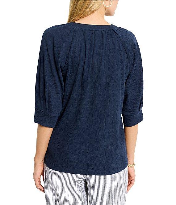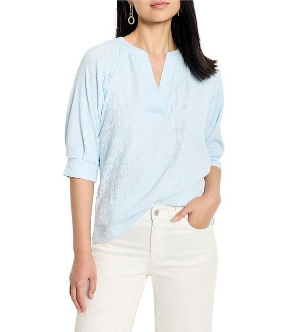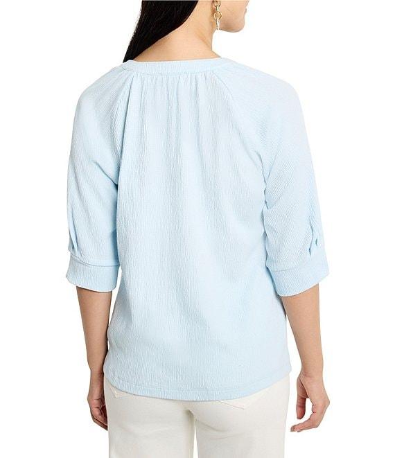NIC + ZOE Crinkle Knit Split Neck Elbow Sleeve Top