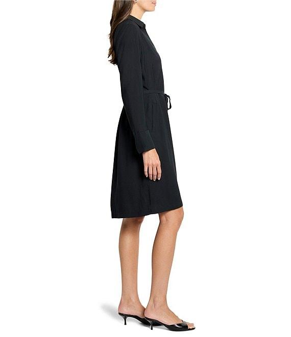 From NIC + ZOE, this dress features: Woven fabrication A-line silhouette Shirt collar neckline Long sleeves Tie waist Side welt pockets Pullover construction Approx. 39" length Recycled polyester/polyester Machine wash Imported.