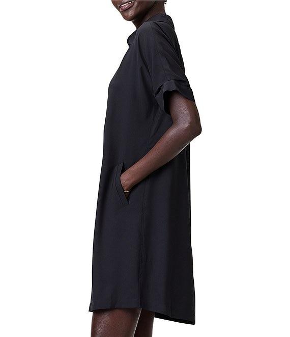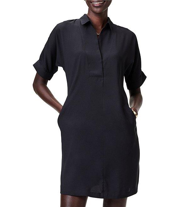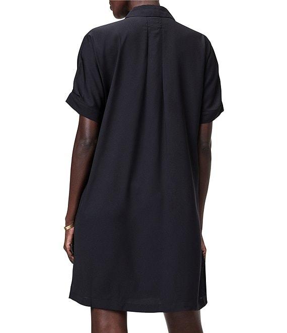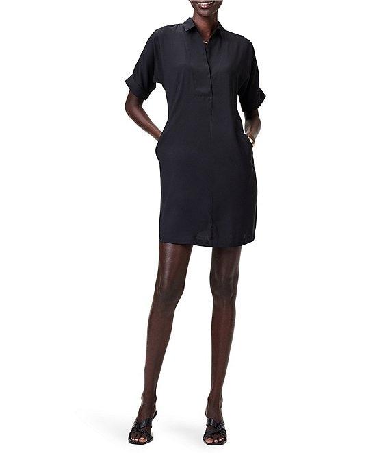 NIC + ZOE Devon Woven Satin Back Crepe Point Collar Short Dolman Sleeve Shirt Dress
