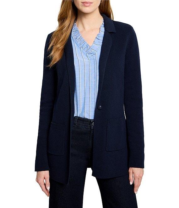 From NIC + ZOE, this blazer features: Knit fabrication Notch lapel neckline Long sleeves Patch pockets Button front closure Approx. 27" length Cotton/viscose/recycled polyester Hand wash Imported.