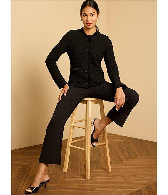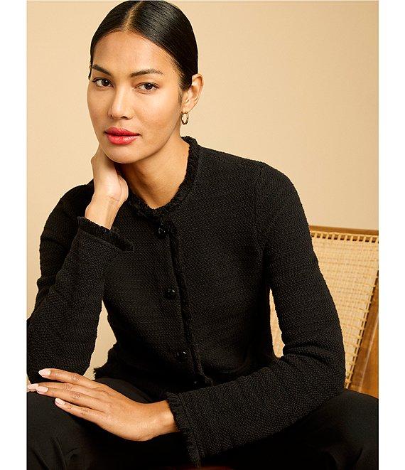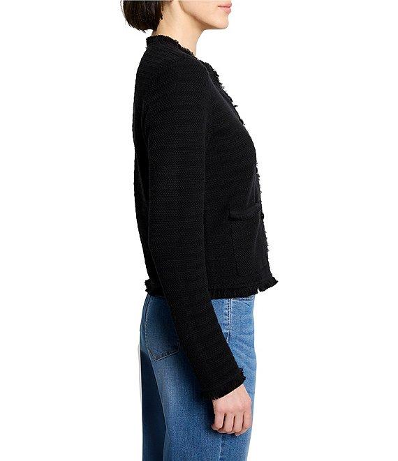 NIC + ZOE Fringe Mix Femme Knit Round Neck Long Sleeve Jacket