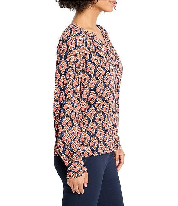 NIC + ZOE Harvest Ikat Split V-Neck Long Sleeve Blouse