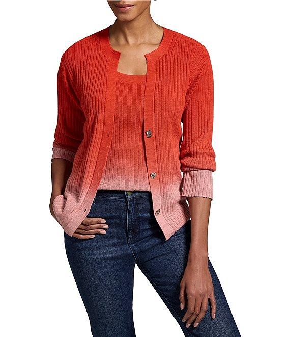 NIC + ZOE Luxe Ombre Ribbed Knit Round Neck Long Sleeve Cardigan