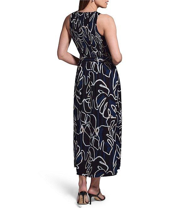 From NIC + ZOE, this dress features: Chiffon fabrication Fit-and-flare silhouetteMidnight muse print Smocked bodice Round neckline SleevelessGromet belt Straight hem with side slitPullover construction Approx. 52" length ViscoseMachine wash Imported.