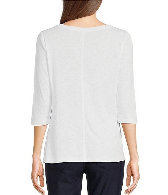 NIC + ZOE NZT Knit Jersey Boat Neck 3/4 Sleeve Tee Shirt