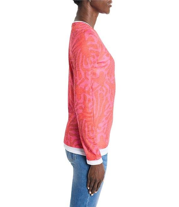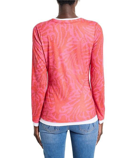 From NIC + ZOE, this top features: Lightweight NZT knit fabrication Stamped leaves print Double layer styling Round neckline Long sleeves Straight hem Pullover construction Approx. 24.5" length Polyester/rayon Machine wash/tumble dry Imported.
