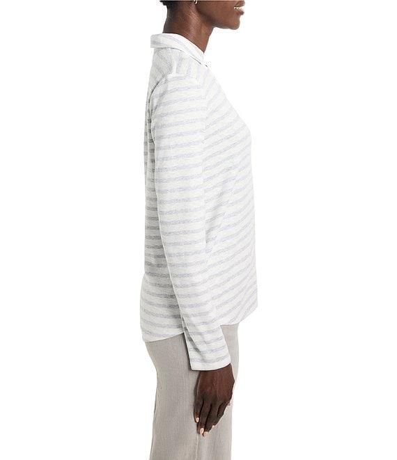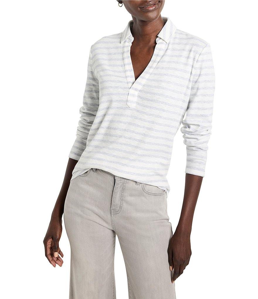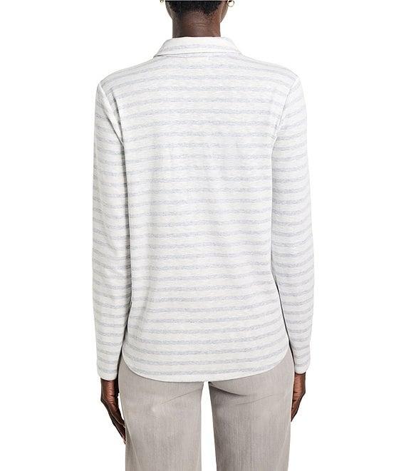 NIC + ZOE NZT Knit Striped Easy Fit Polo Split Neck Long Sleeve Shirt