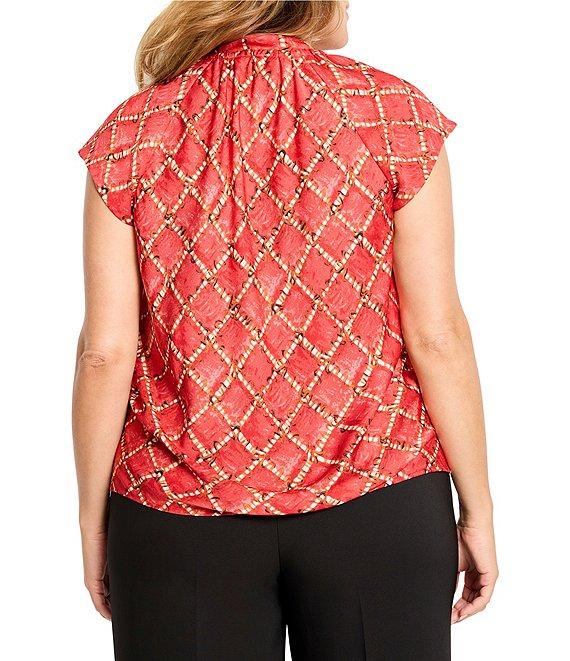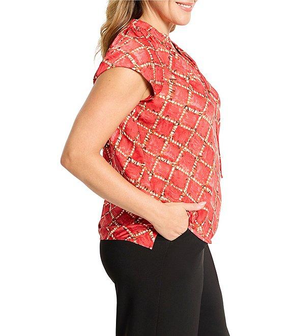 NIC + ZOE Plus Size Squiggle Check Split V-Neck Cap Sleeve Top