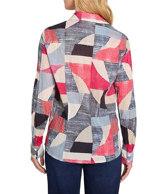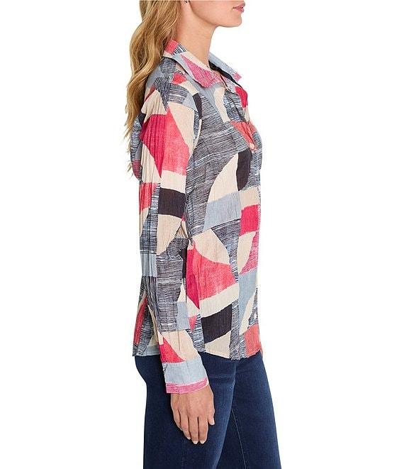 NIC + ZOE Set Sail Geo Crinkle Point Collar Long Sleeve Shirt