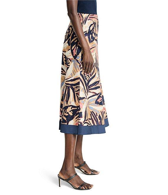 NIC + ZOE Terracotta Tropical Garden Print A-Line Midi Skirt