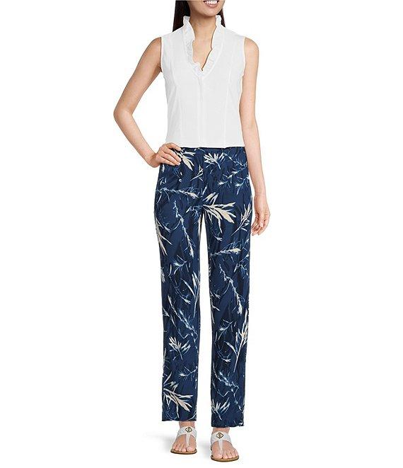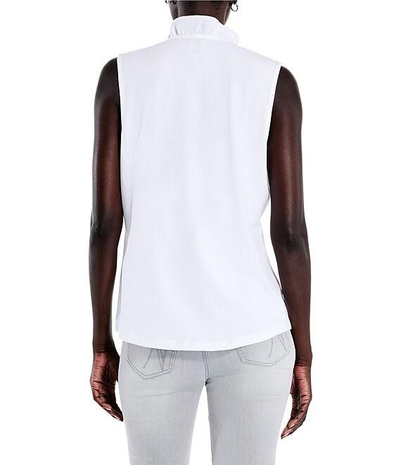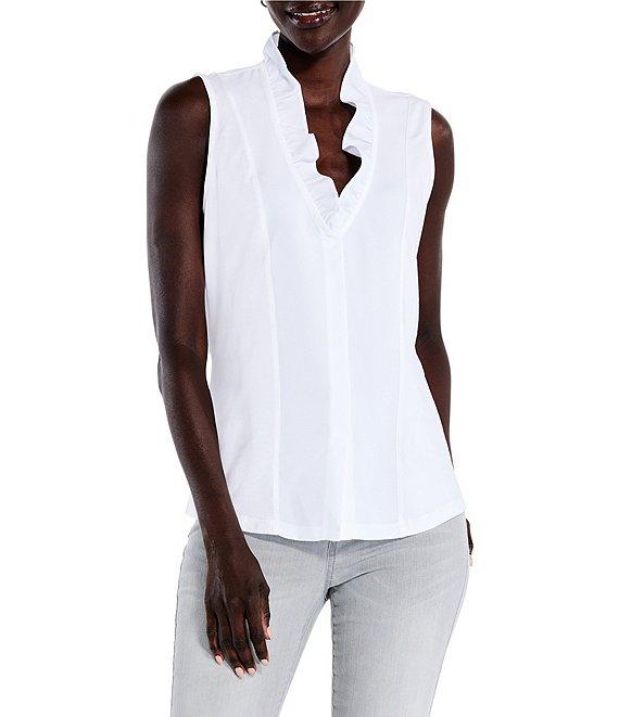 From NIC + ZOE, this tank top features: Cotton modal woven fabrication Ruffled stand collar v-neckline Sleeveless Fitted Sits at hip Front slit at hemline Pullover construction Approx. 25.5" in length Cotton/modal/spandex; trim: polyester Machine wash/tumble dry Imported.