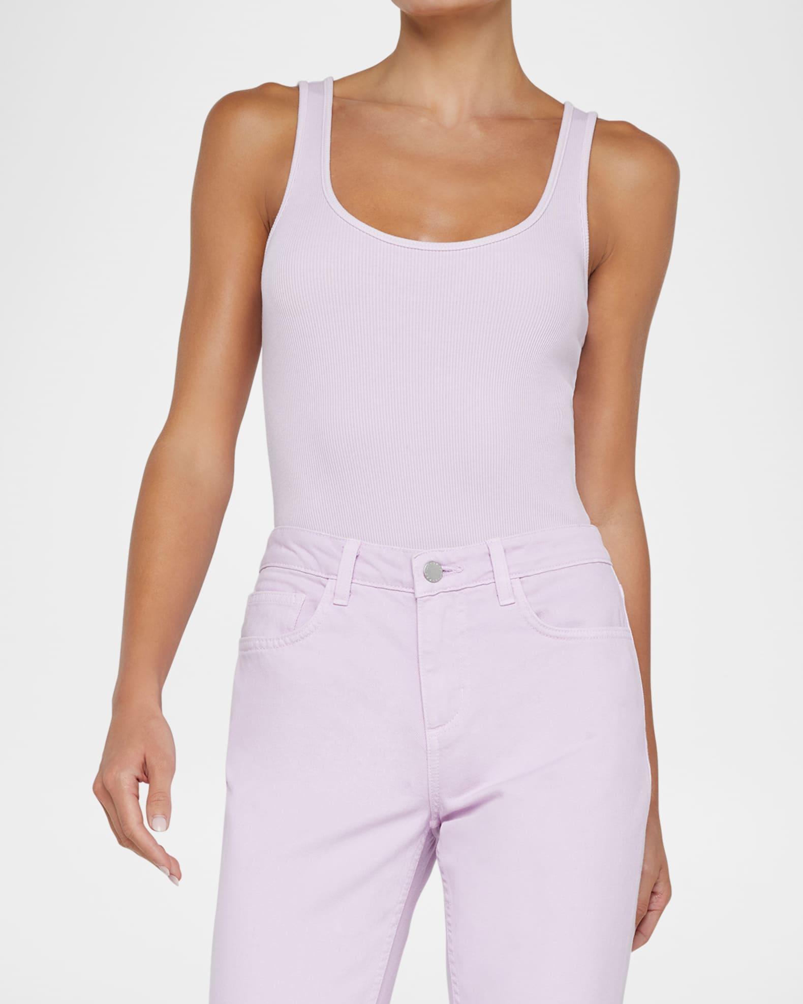 L'Agence "Nica" ribbed-knit bodysuit Scoop-neckline Sleeveless Fitted silhouette Snap-gusset closure Cotton/modal/spandex Made in USA Model is 5'10"/177cm.