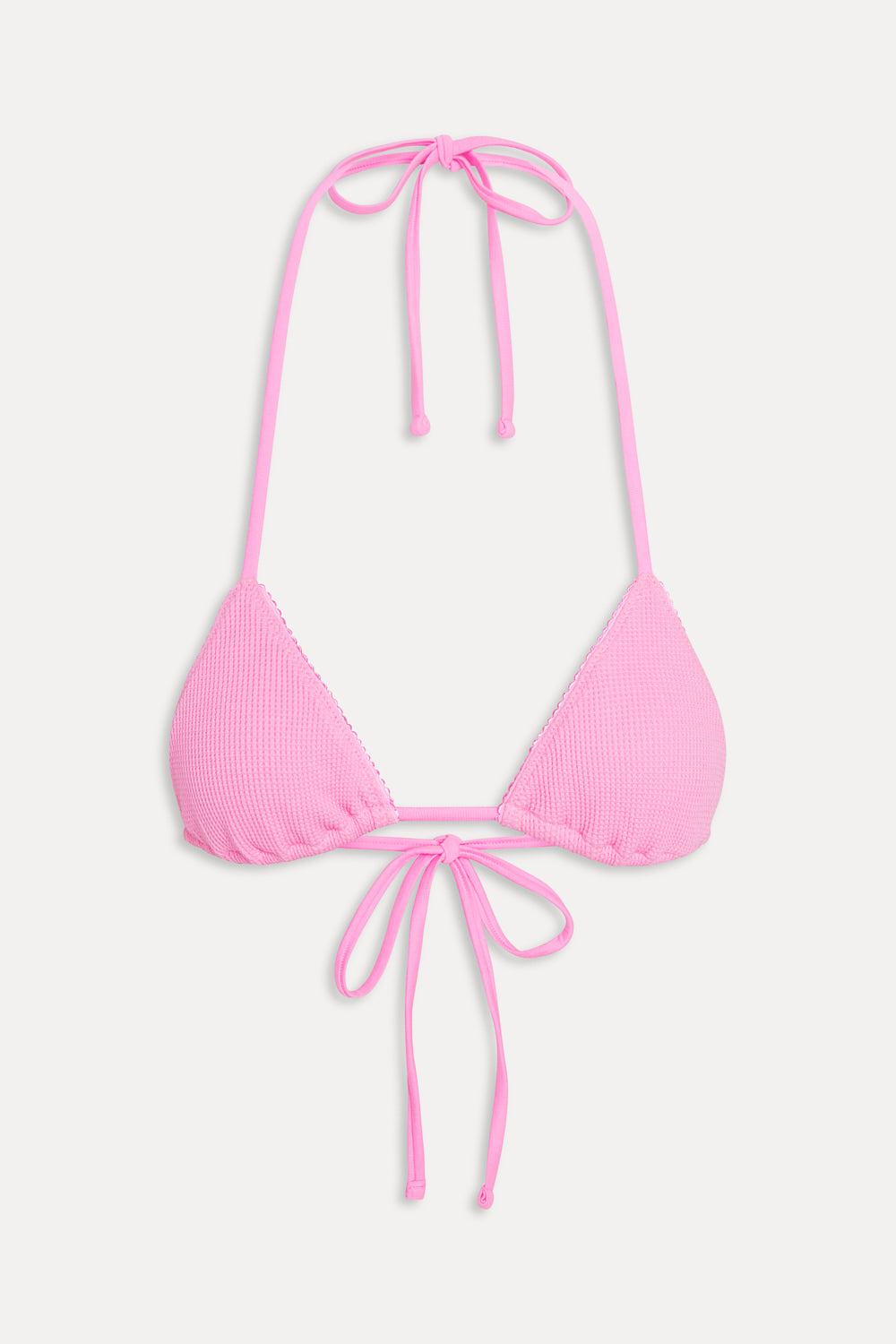 Our most tried and true triangle bikini top is here to stay. Nick features a new thermal swim fabric and adjustable string ties that wrap around your neck and back for a personalized fit. Details Halter bikini top Skimpy coverage Designed in new thermal swim fabric Ties at the neck and back Ruched and trim detailing New Made to Fade Thermal Our waffle thermal fabric is one of a kind and designed to fade over time like your perfect vintage find. Care Instructions Add ½ cup distilled vinegar in the first wash Turn inside out Cold wash with mild detergent Avoid laundry pods Wash separately Tumble dry low or line dry