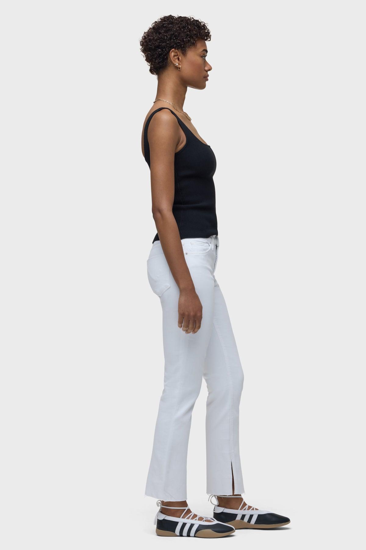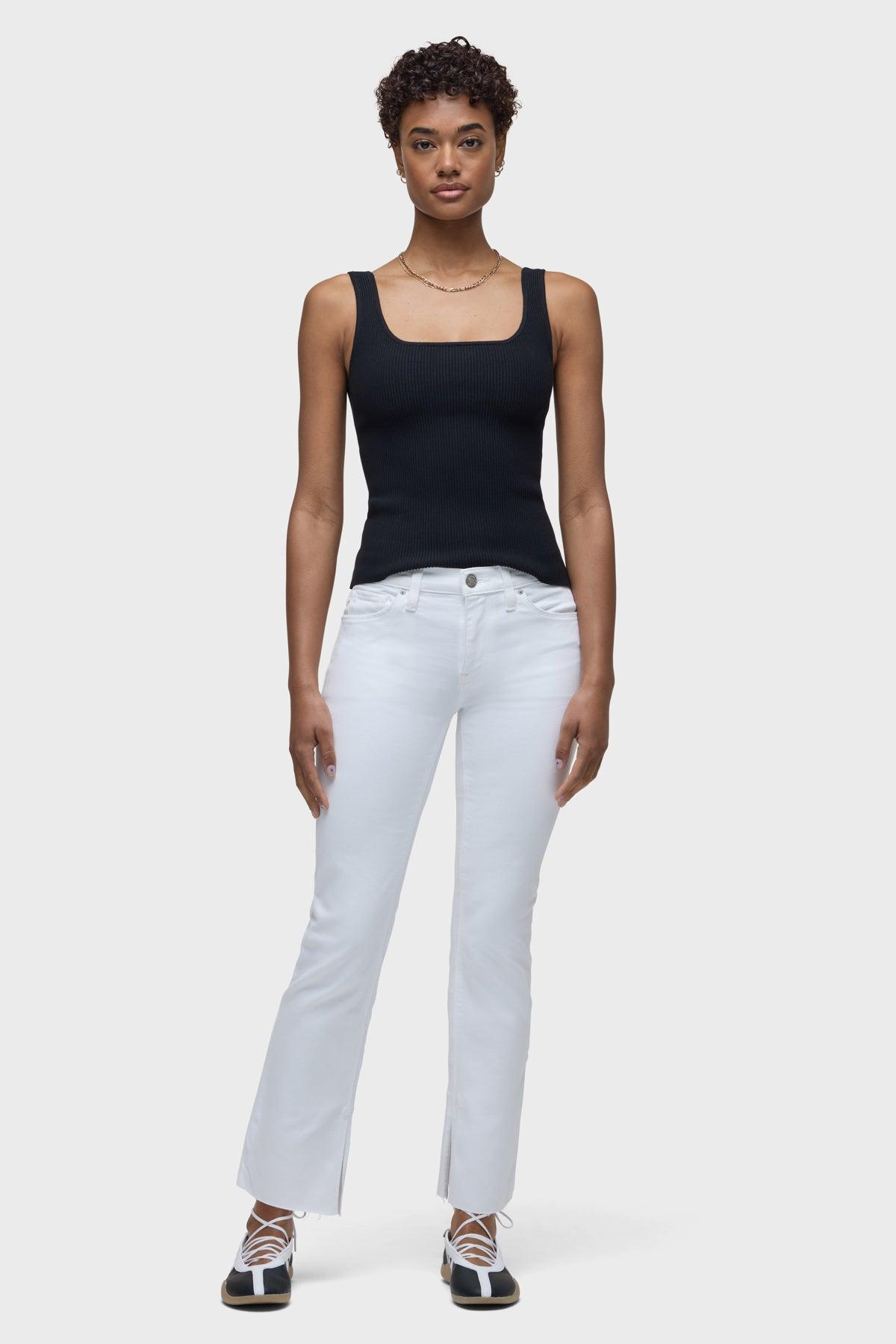 Description Our Nico Mid-Rise Straight Ankle w/ Slit Hem is cut for a streamlined fit in premium super stretch denim. The Spring White wash features a slit hem and five-pocket details.This style runs big. We recommend sizing down one full size. Product Details Front Rise: 9.25", Leg Opening: 14", Inseam: 28"Model Height 5'9"Model wearing size 25Measurements based on size 27 Fit & Care Content: 90% Cotton, 8% Polyester, 2% ElastaneMachine wash cold with like colorsDo not bleachTumble dry low or hang to dry