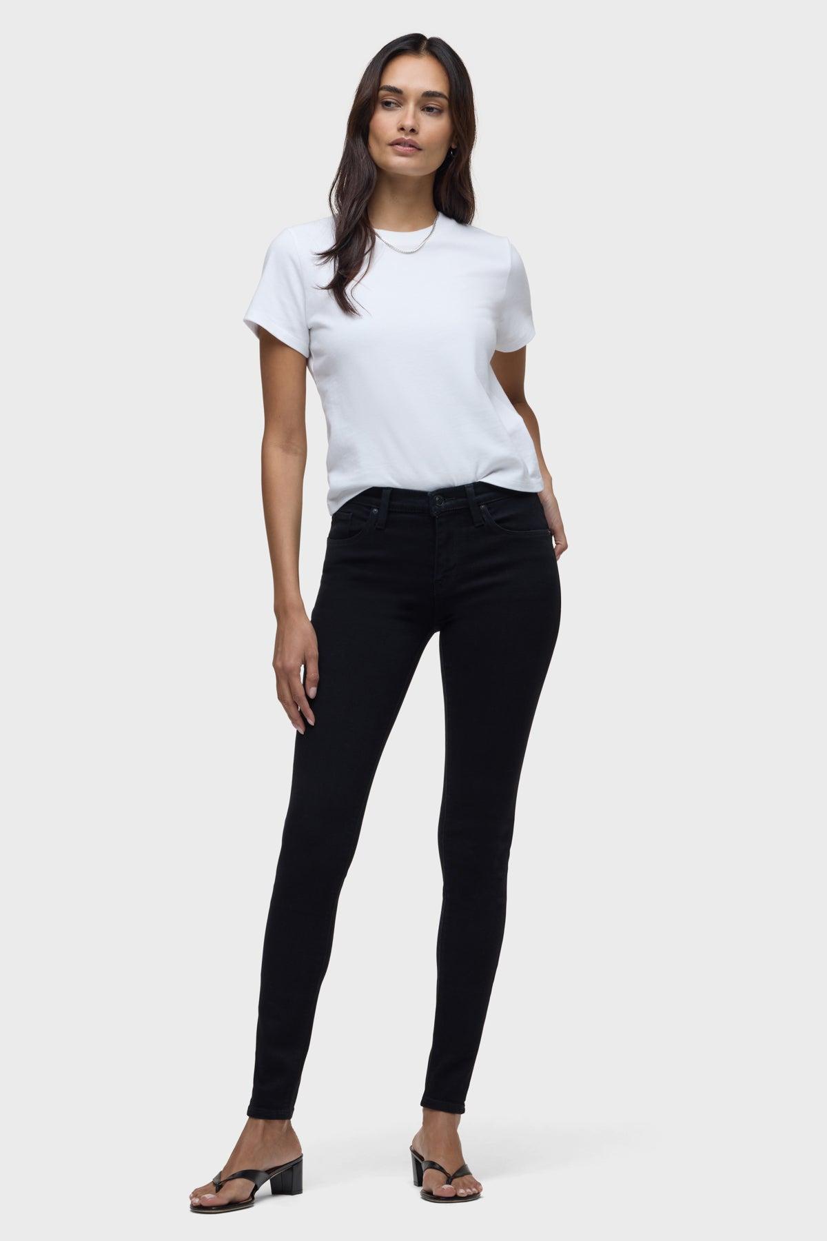 Description Our Nico Mid-Rise Rise Super Skinny Jean in Black is crafted from soft, super stretch denim designed to hold its shape with extended wear. Holds-you-in fit. Slim at the ankle. Sits at the natural waist. Product Details 5 Pocket StyleZipper FlyFront Rise: 9"Leg Opening: 10"Inseam: 30"Model Height: 5'10Model wearing size 25Measurements based on size 27 Fit & Care Content: 57% Cotton 37% Modal 4% EME 2% ElastaneMachine wash cold with like colorsDo not bleachTumble dry low or hang to dry
