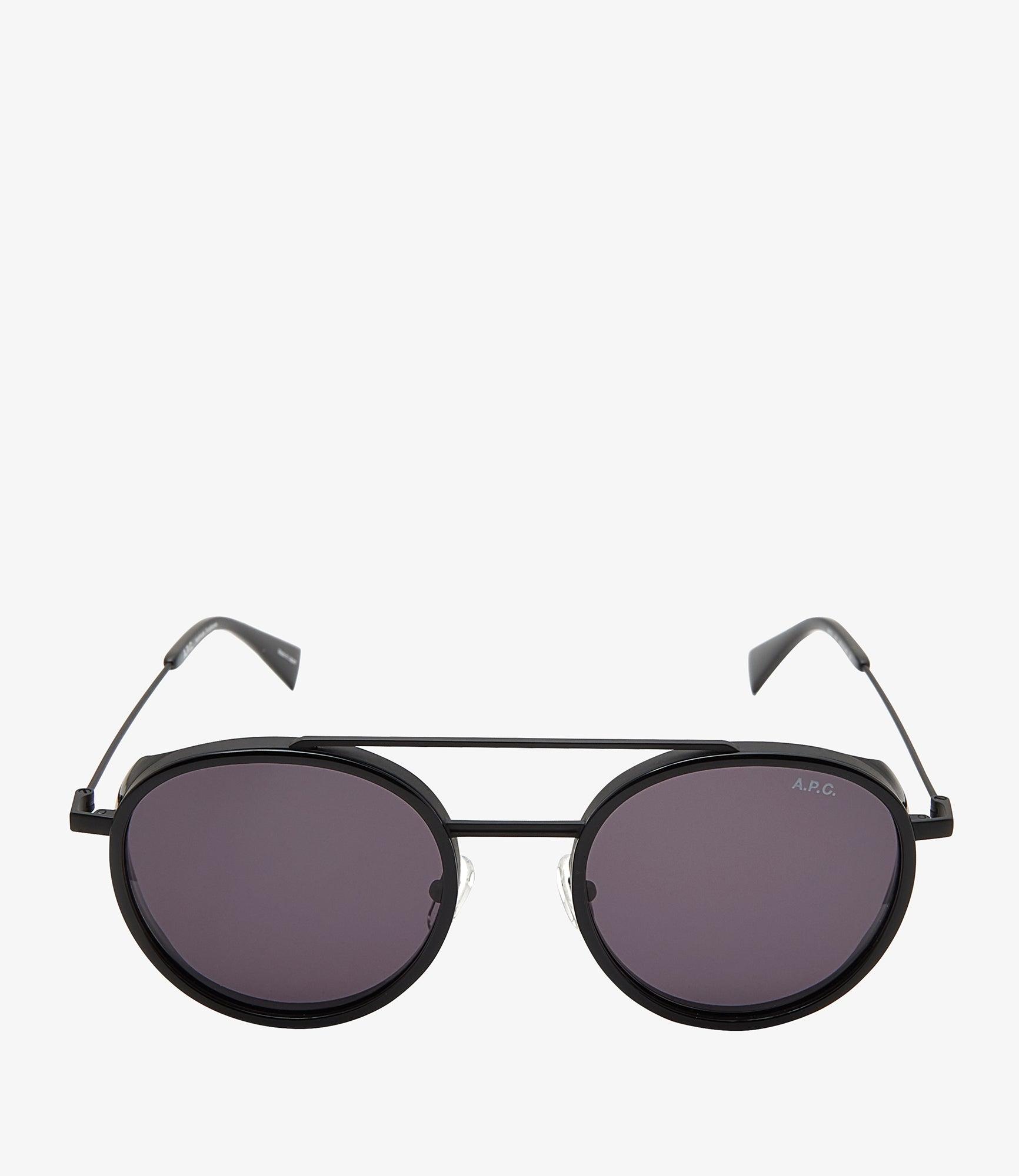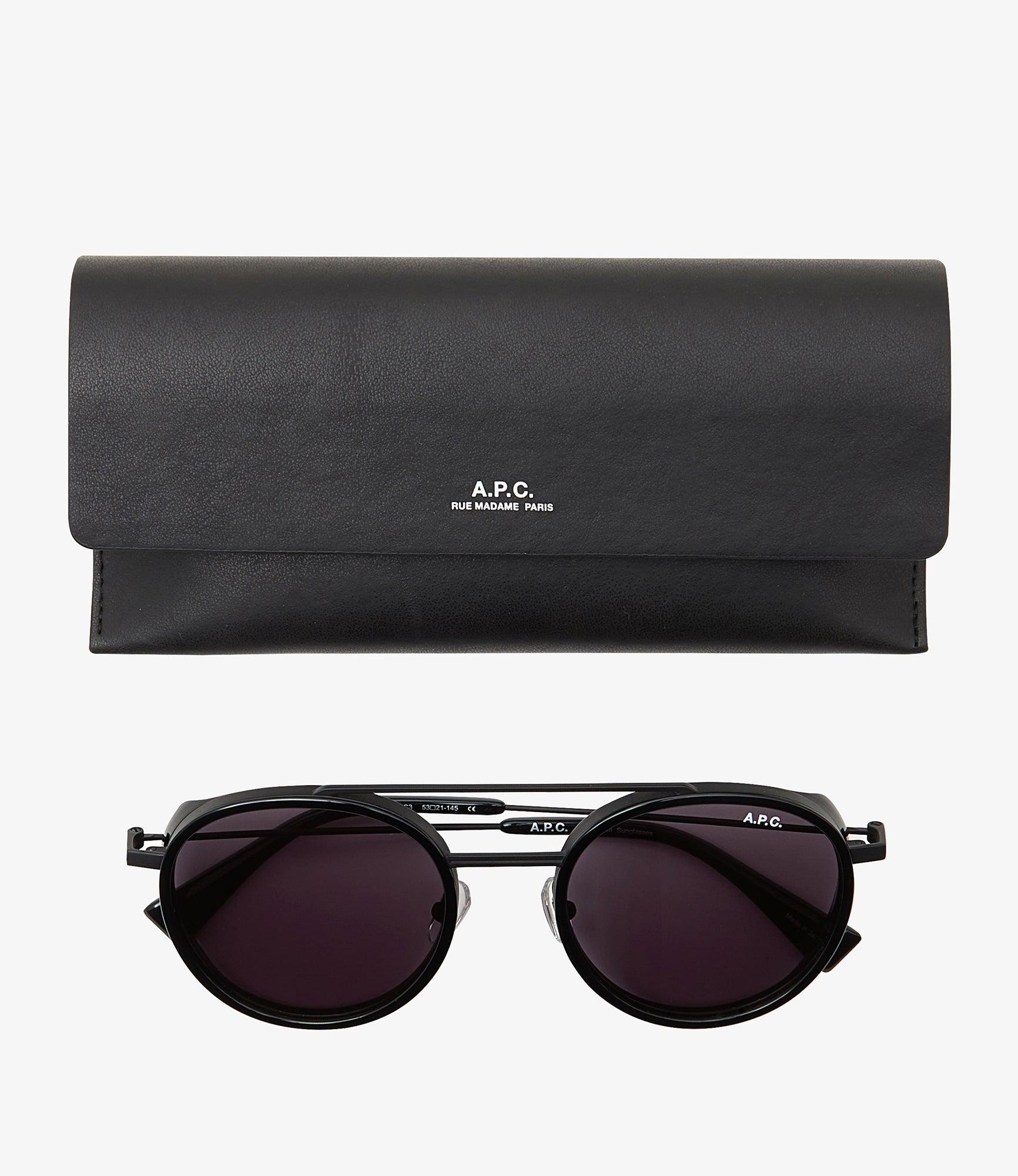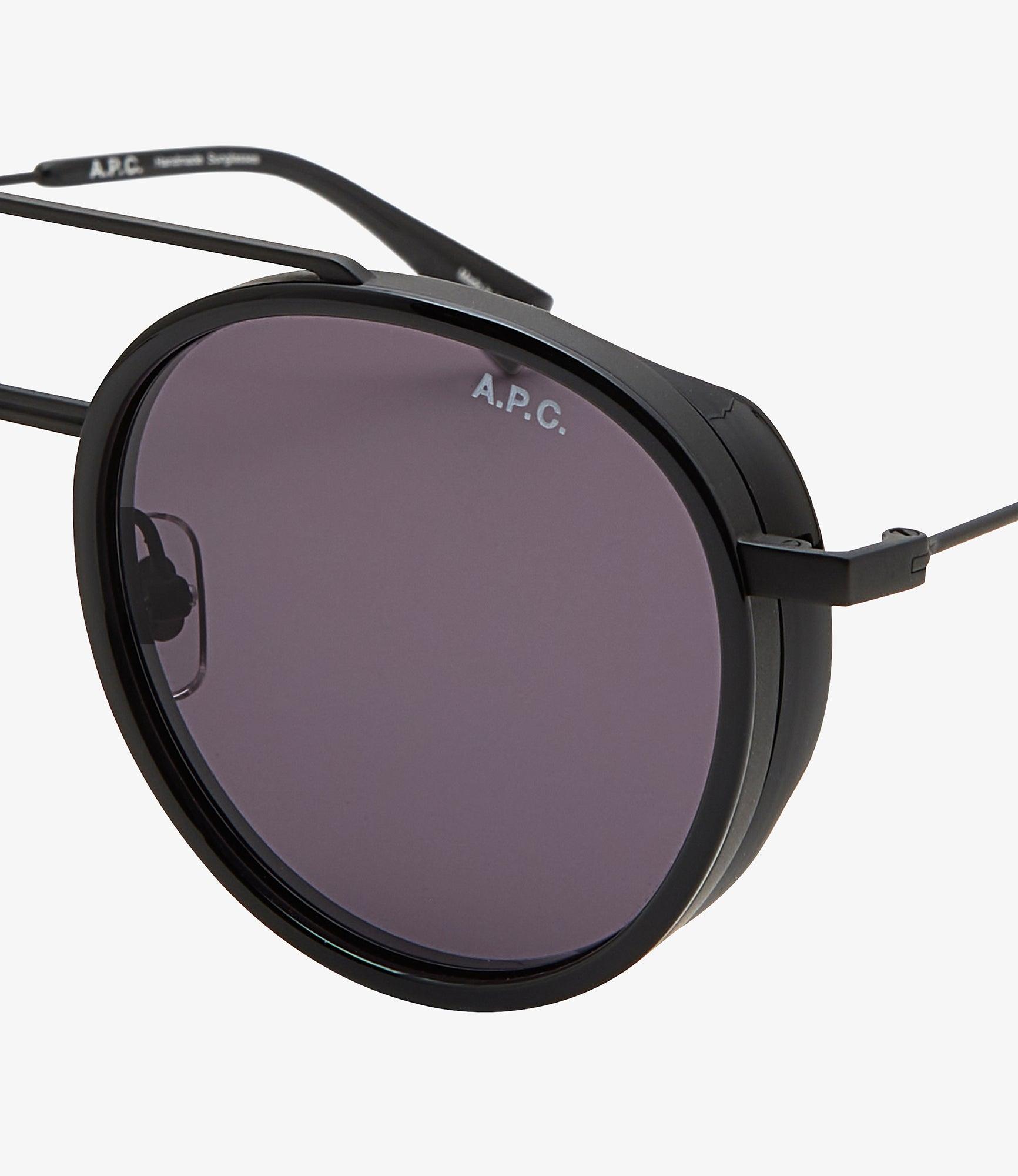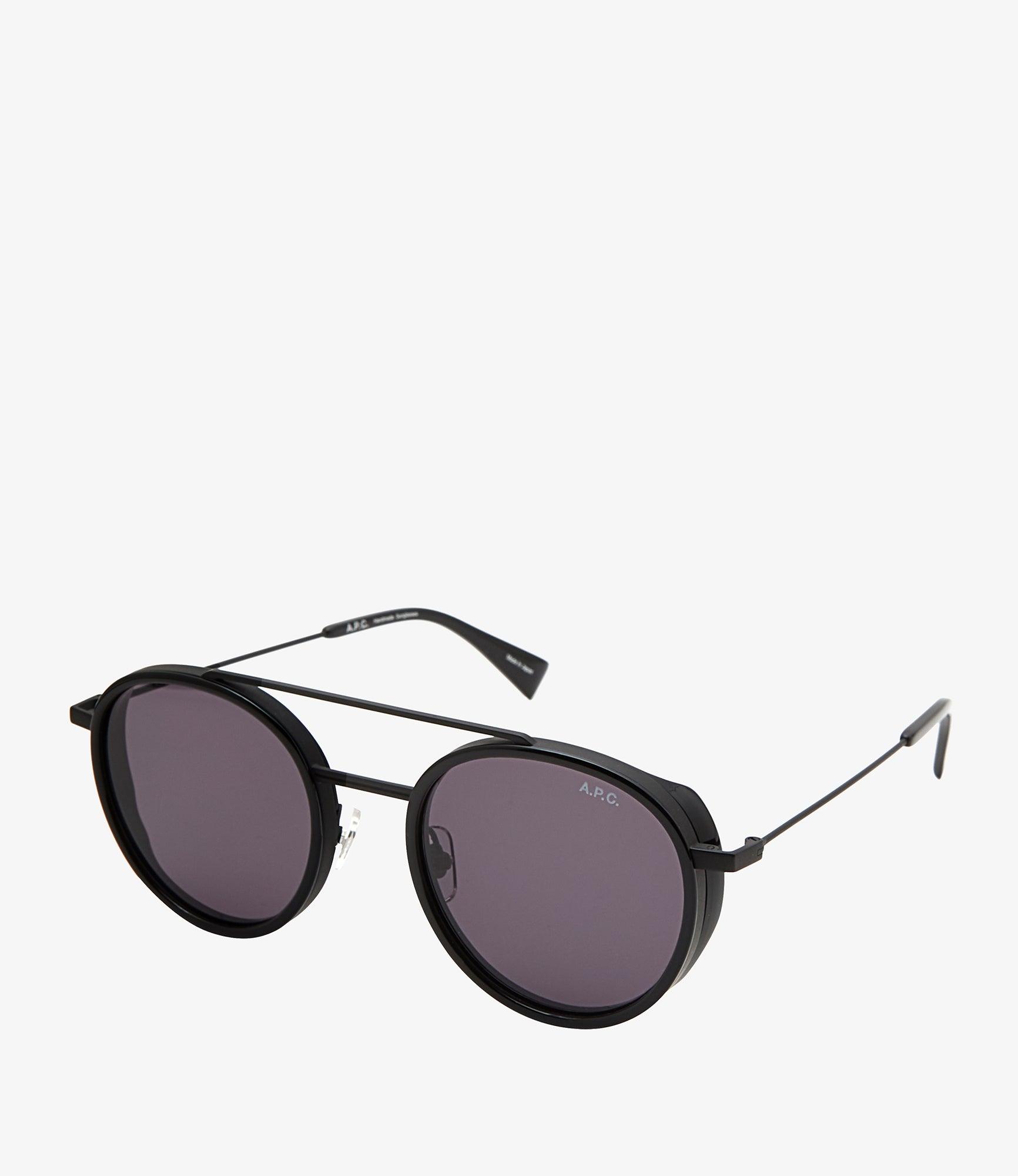 - Unisex piece. - Available in two sizes: classic or narrow. Size 1: 21 mm, Size 2: 25 mm. - Smoky black lenses. - Matt black metal temples. - White A.P.C. logo engraved on the left lens and at the end of the temples. - Compatible with prescription lenses. - 100% UVA/UVB protection (CE). - Lens protection category: 3.
