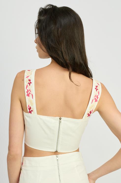 The Nico Top is a beautiful pink embroidered top that can be paired with denim or the matching skirt.