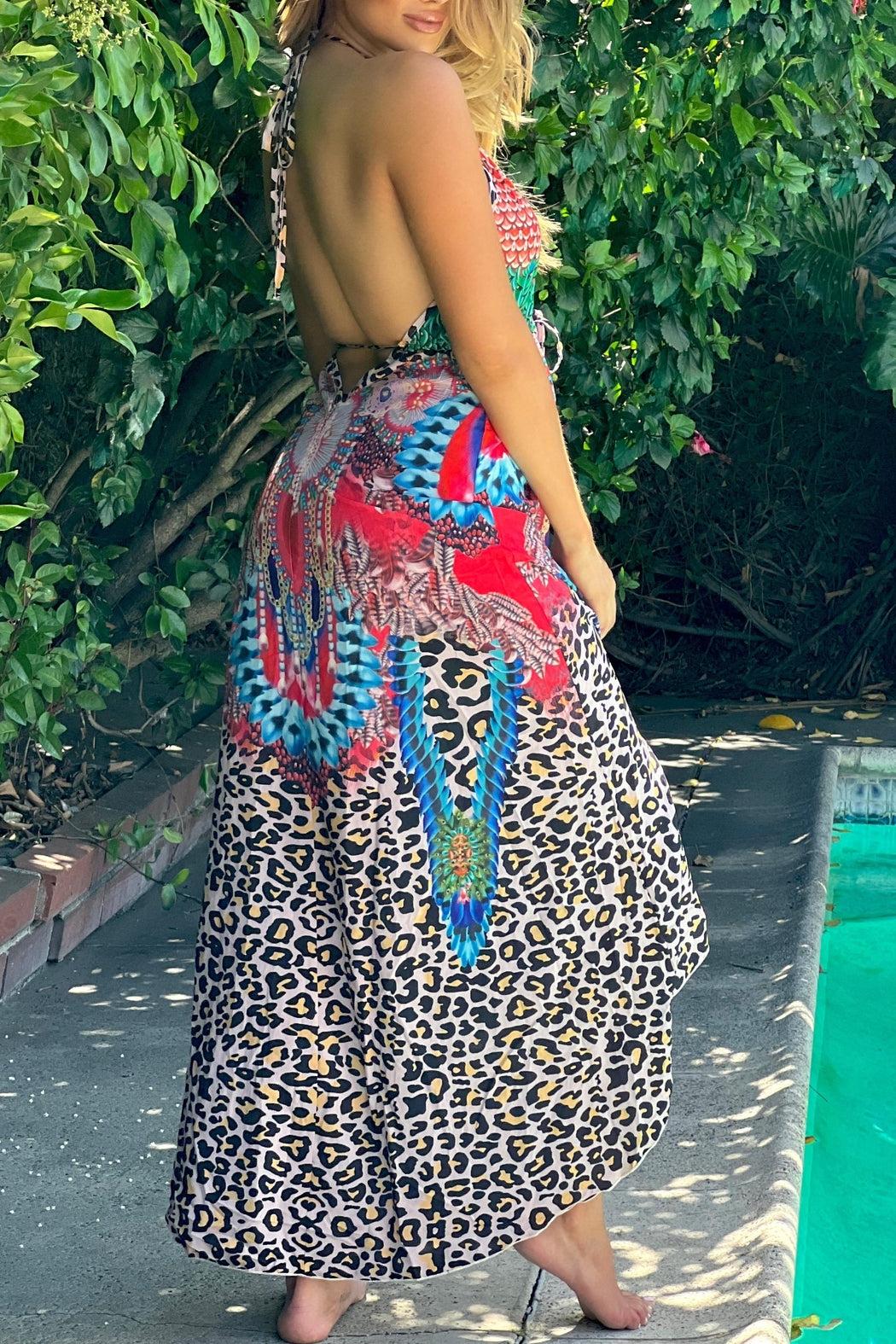 Nicole V-Neck Maxi Dress In Pink Multiprint