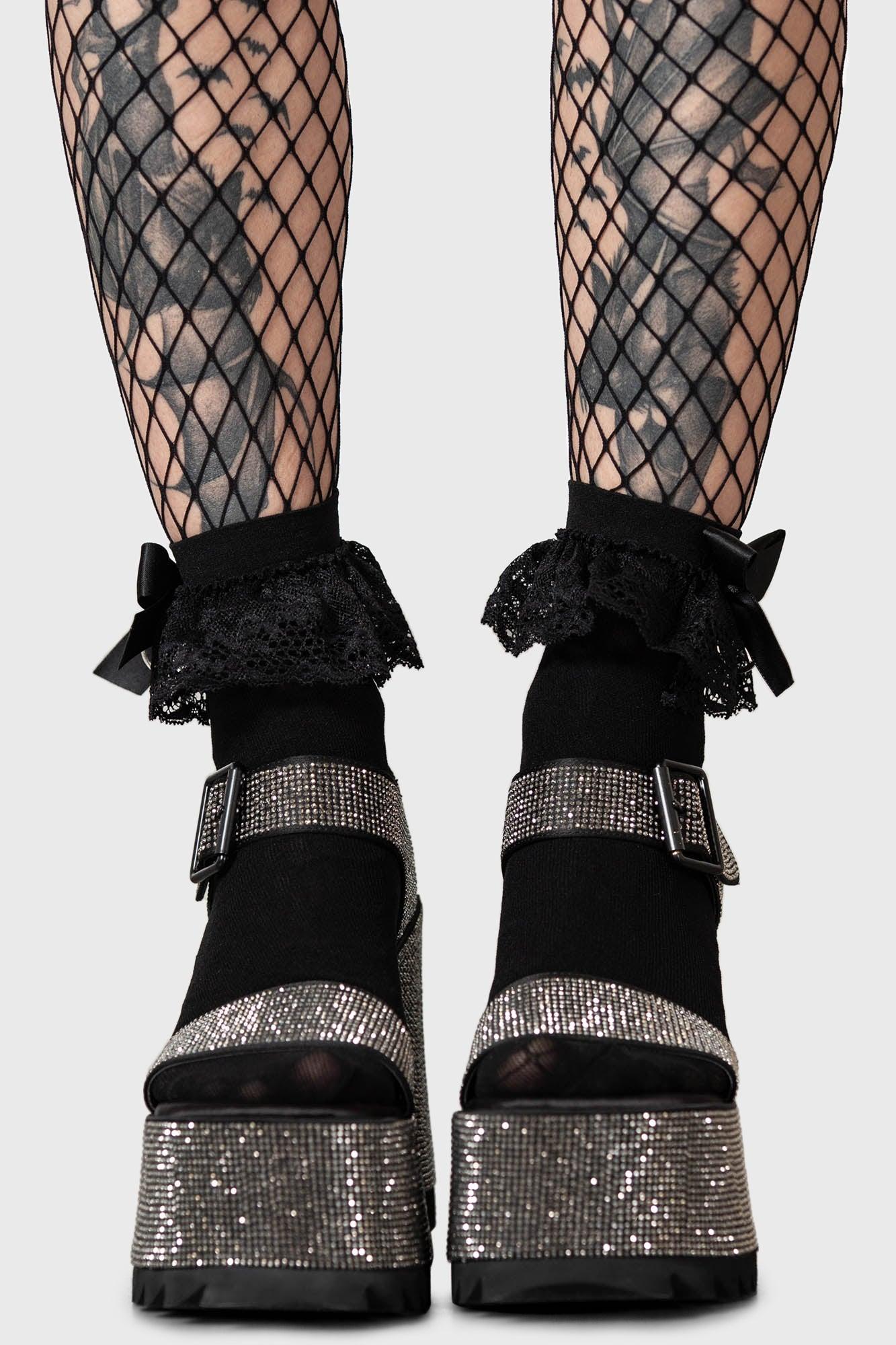 NIGHT QUEEN.- Statement diamanté platform sandal.- Adjustable buckle closure.- Platform heel.- Heel height:12cm/4.7"- Front platform height 6cm/2.3"with KILLSTAR branding, 100% PU.