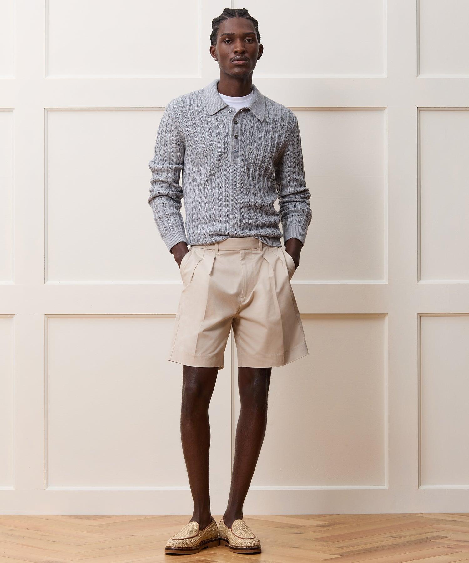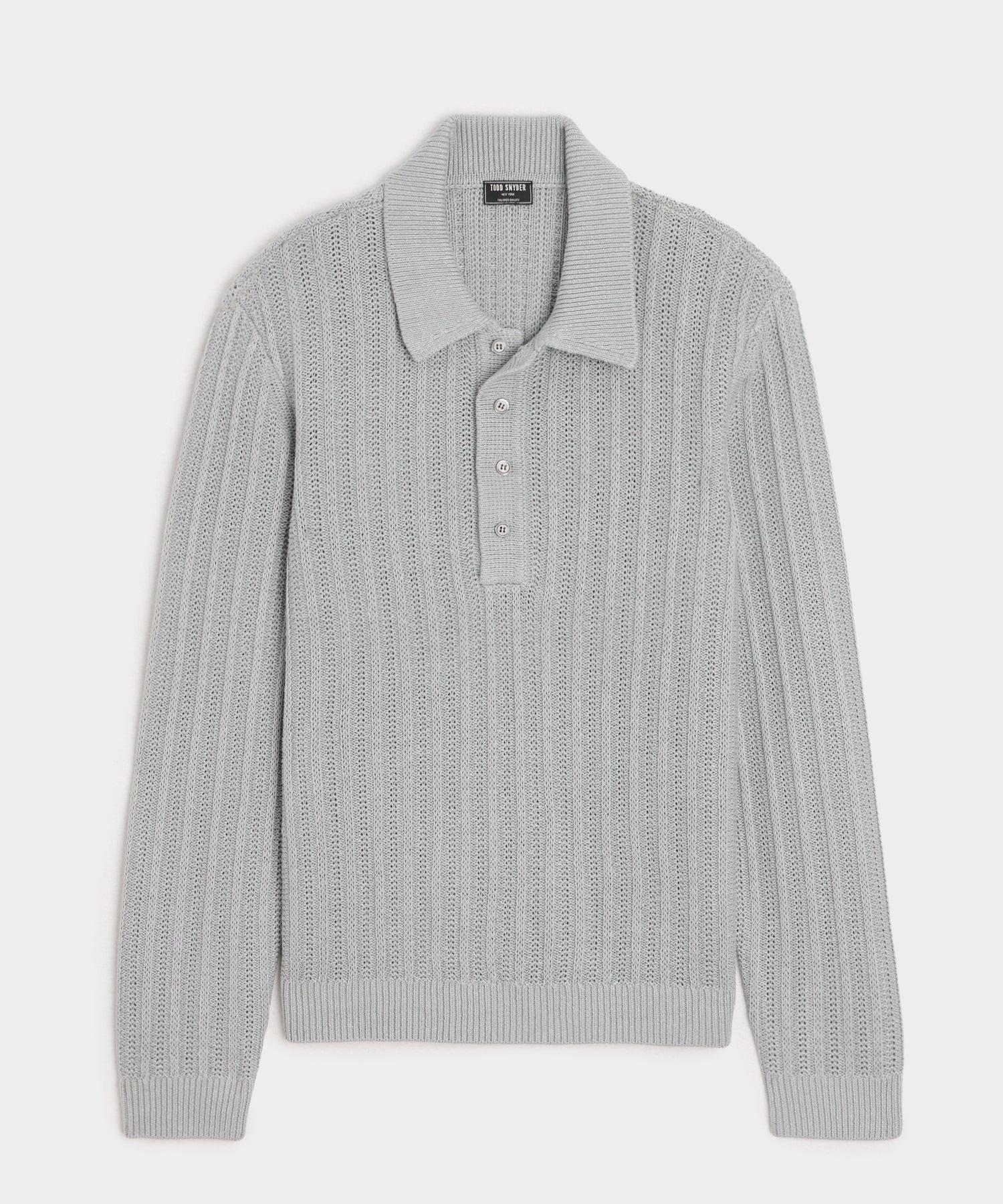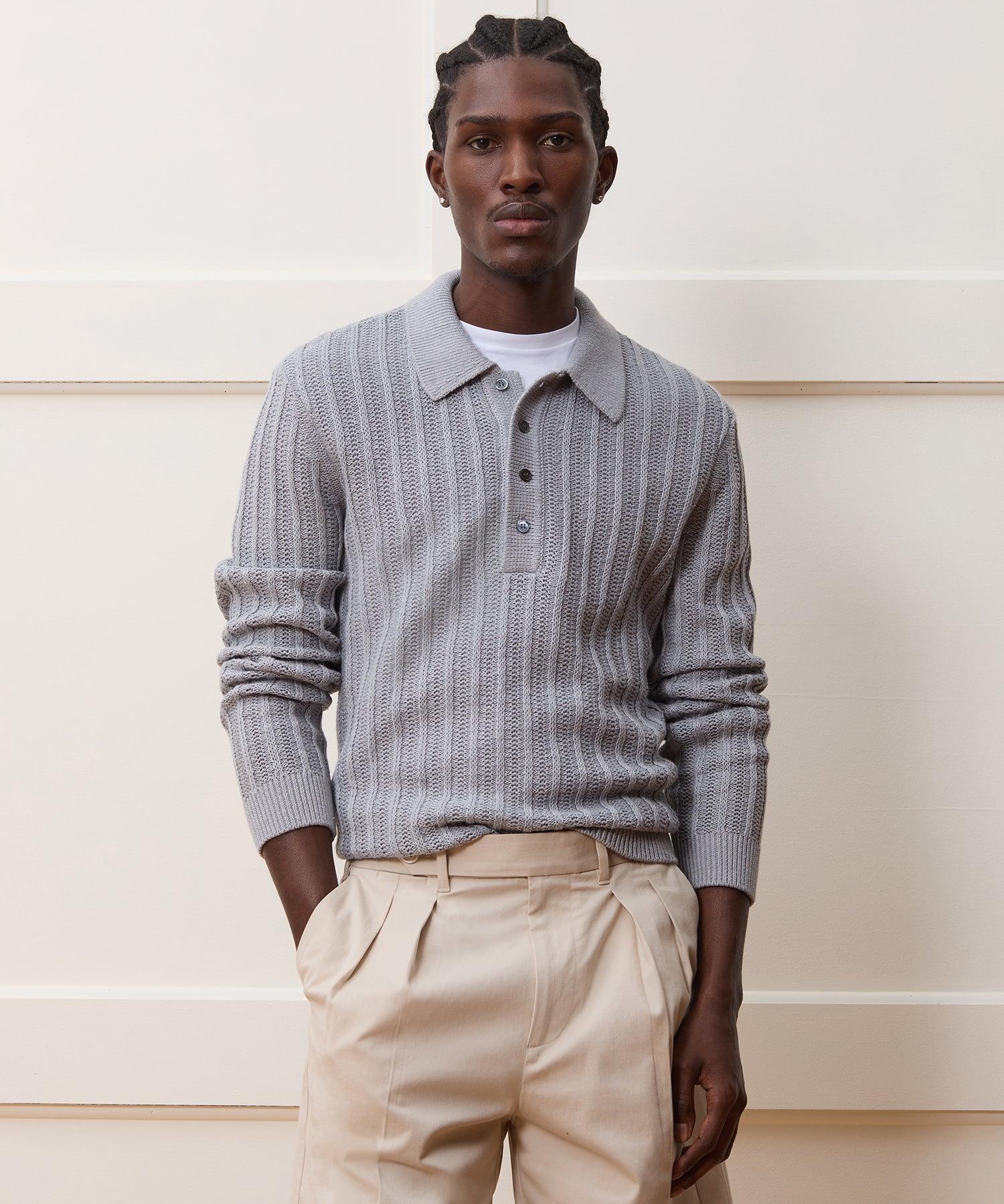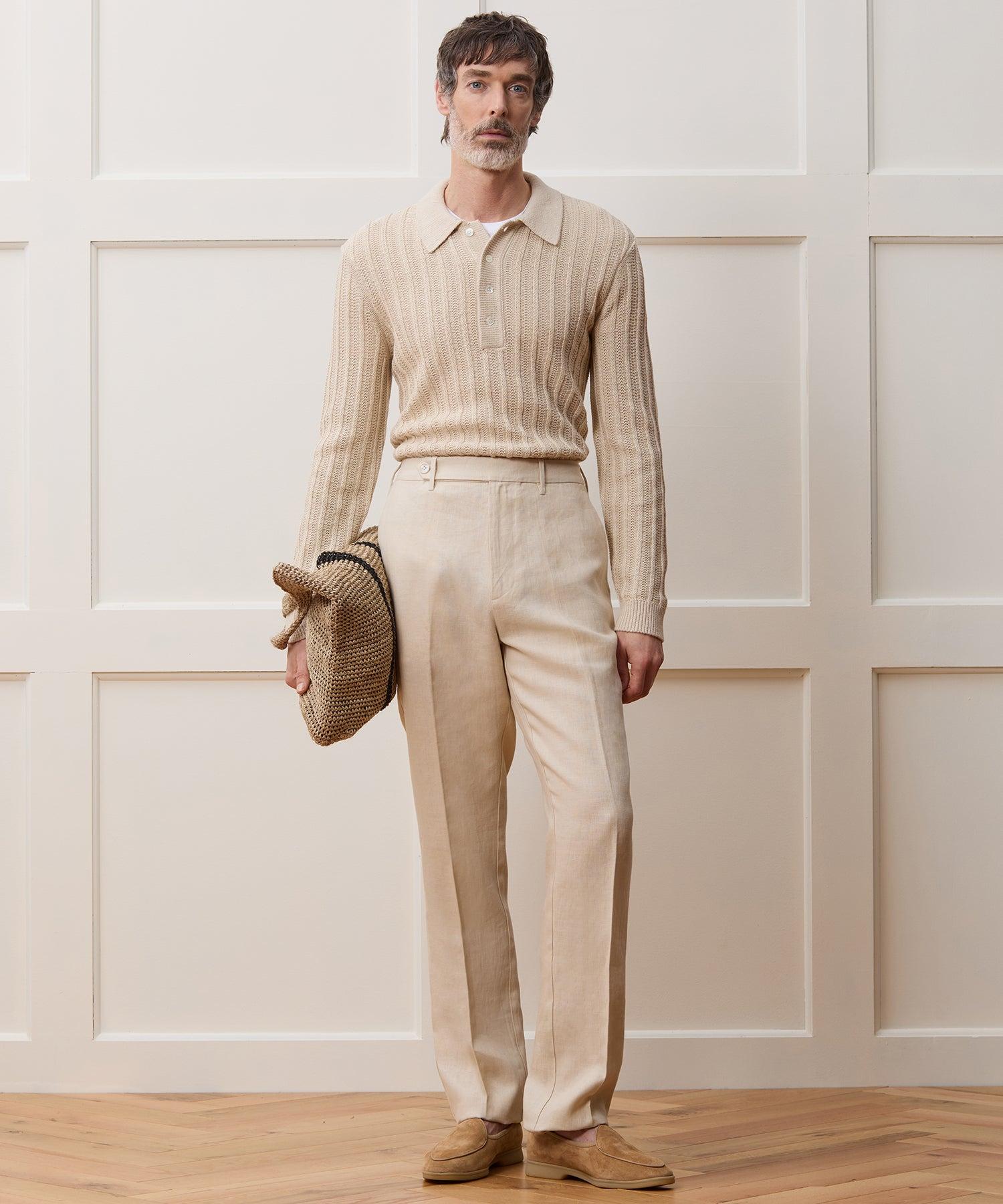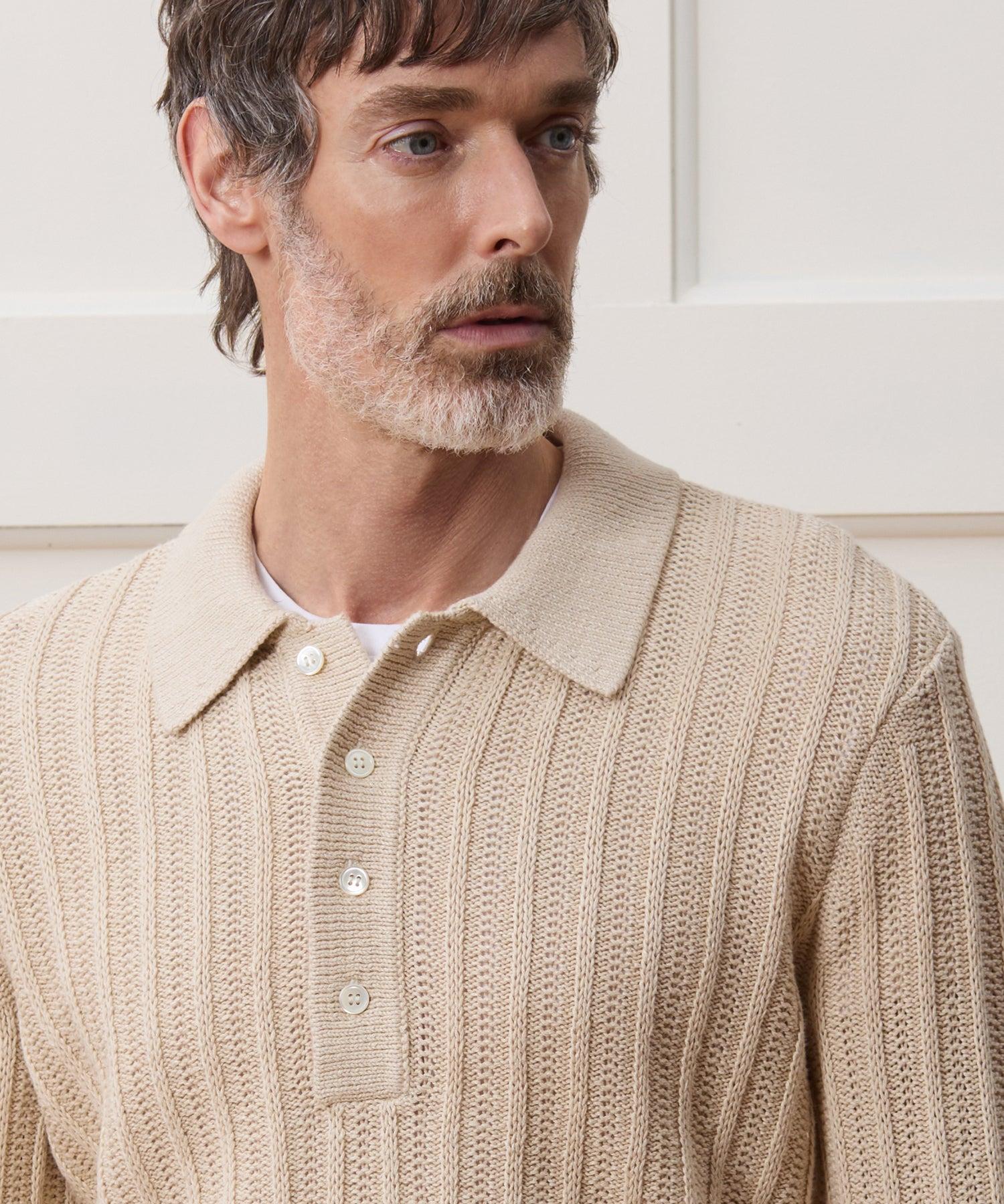 Fancy a nightcap? This chic, versatile sweater polo is crafted from a linen-cotton yarn — it has the subtle luster and dry handfeel of the linen, but the softness and tension of the cotton, so it won’t stretch as much as a pure linen garment might. It’s knit in an exaggerated rib stitch, with a tuck needle in the middle, and has a gently relaxed fit. In short, it’s the perfect transitional piece — layer it over a tee or tank or under a jacket on cooler days, and wear it all on its own when the temperature rises. 70% Linen, 30% Cotton Relaxed Fit 4-Button Placket Made in China Dry clean or hand wash cold. Lay flat to dry. Cool iron inside out if needed. Style SW6560251