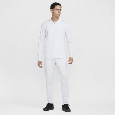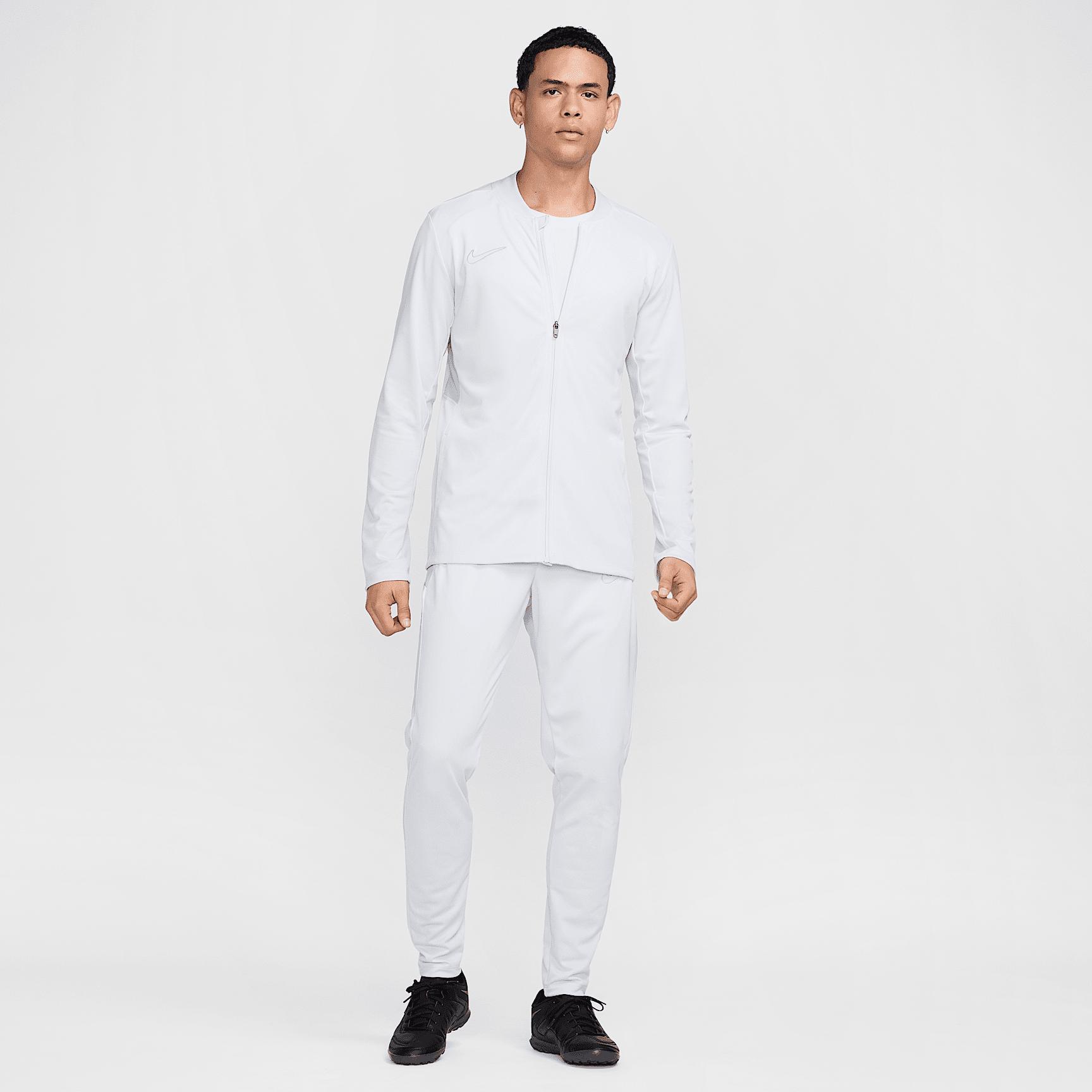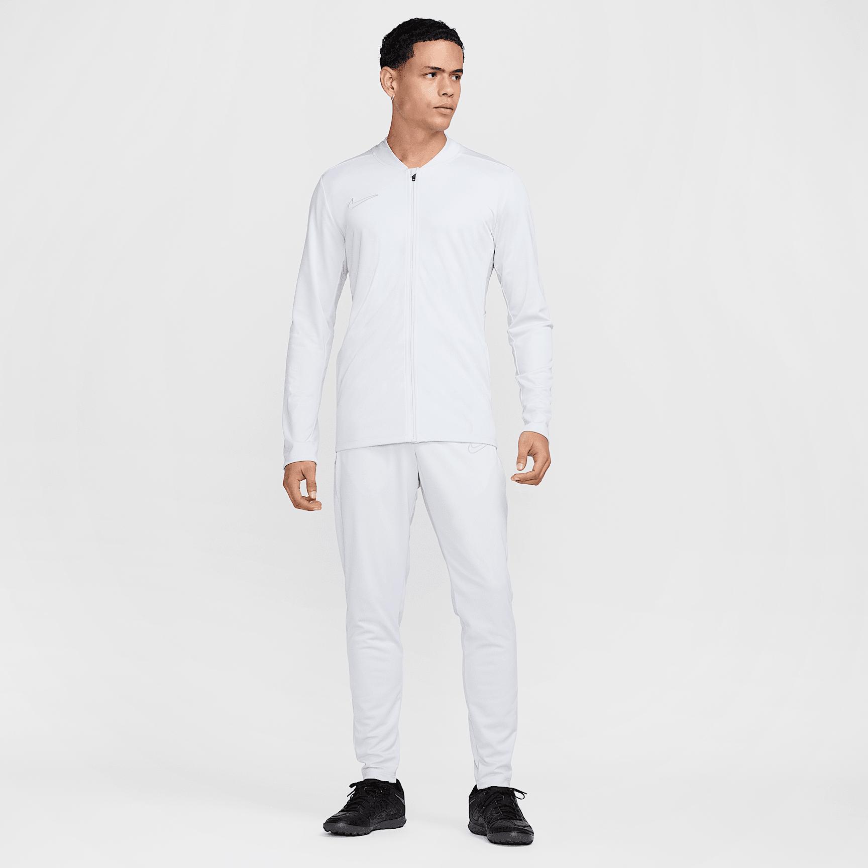 Built for warm-ups and off-field wear, this tracksuit is made with breathable, sweat-wicking knit fabric. A slim fit lets you move without distraction wherever the game takes you. Benefits:Nike Dri-FIT technology moves sweat away from your skin for quicker evaporation, helping you stay dry and comfortable. Smooth knit fabric feels light and cool. The jackets open-hand pockets and the pants zippered pockets provide storage for essentials. Product Details:Jacket: Full-zip design. Pants: Elastic waistband with drawcord. Body: 100% polyester. Machine wash. Imported. Style: HJ3773; Color: Photon Dust/Light Smoke Grey/Dynamic Turquoise; Size: L; Gender: Male; Age Group: Adult | Nike Academy Mens Dri-FIT Soccer Tracksuit in Grey, Size: Large | HJ3773-025