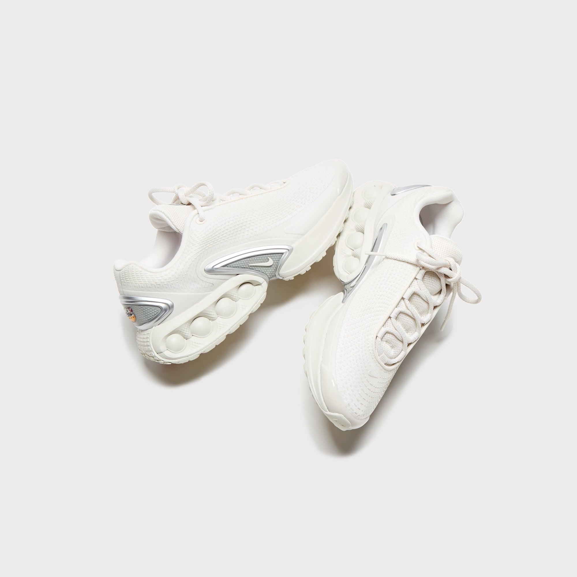 Air Max Dn silhouette Mesh upper Leather overlays Padded collar air max branding on tongue Swoosh on vamp Flat cotton laces TPU paneling on heel counter Dynamic Air sole unit Rubber outsole Style: nkdv3337-013 Color: Phantom / Light Bone / Metallic Silver Material: Mesh / Leather