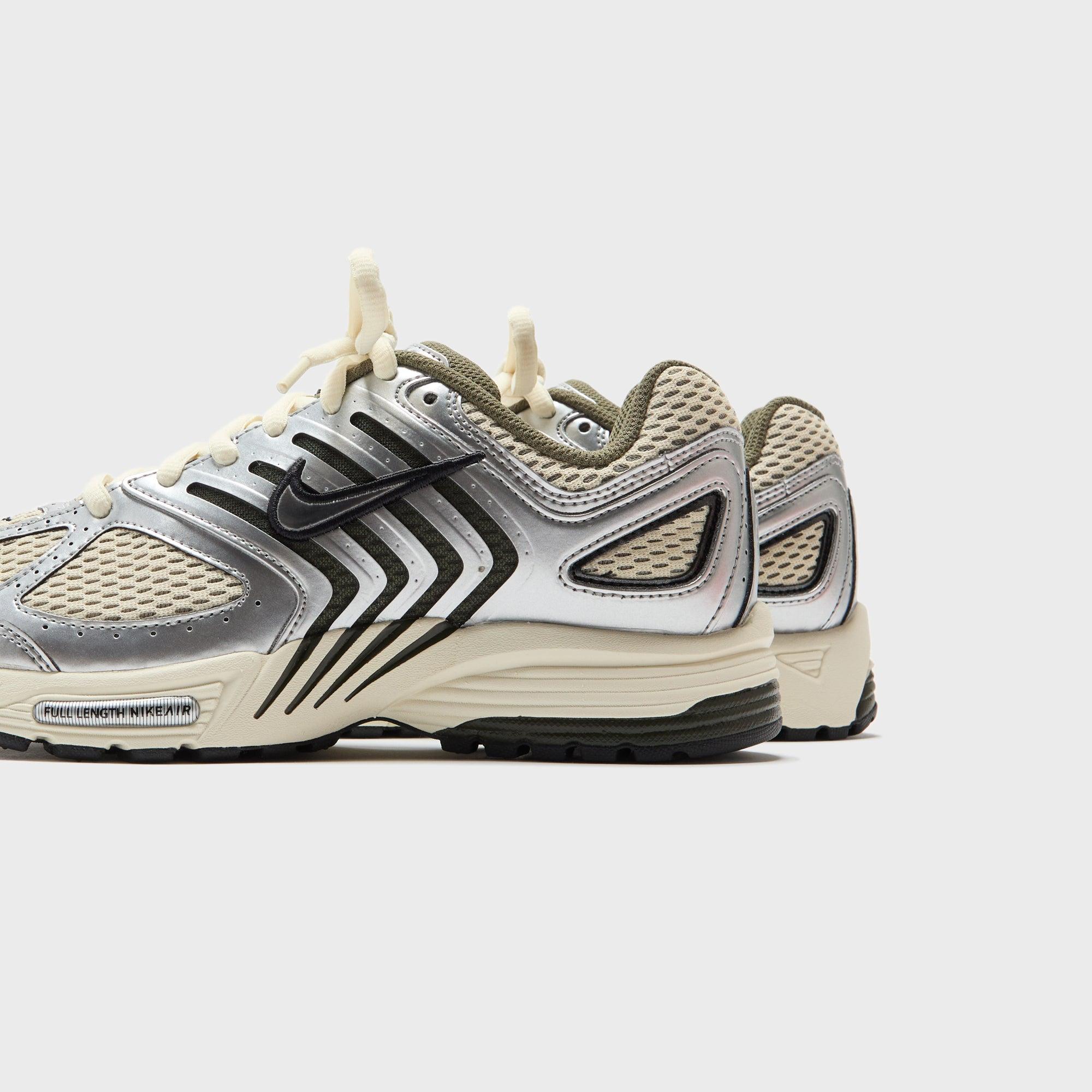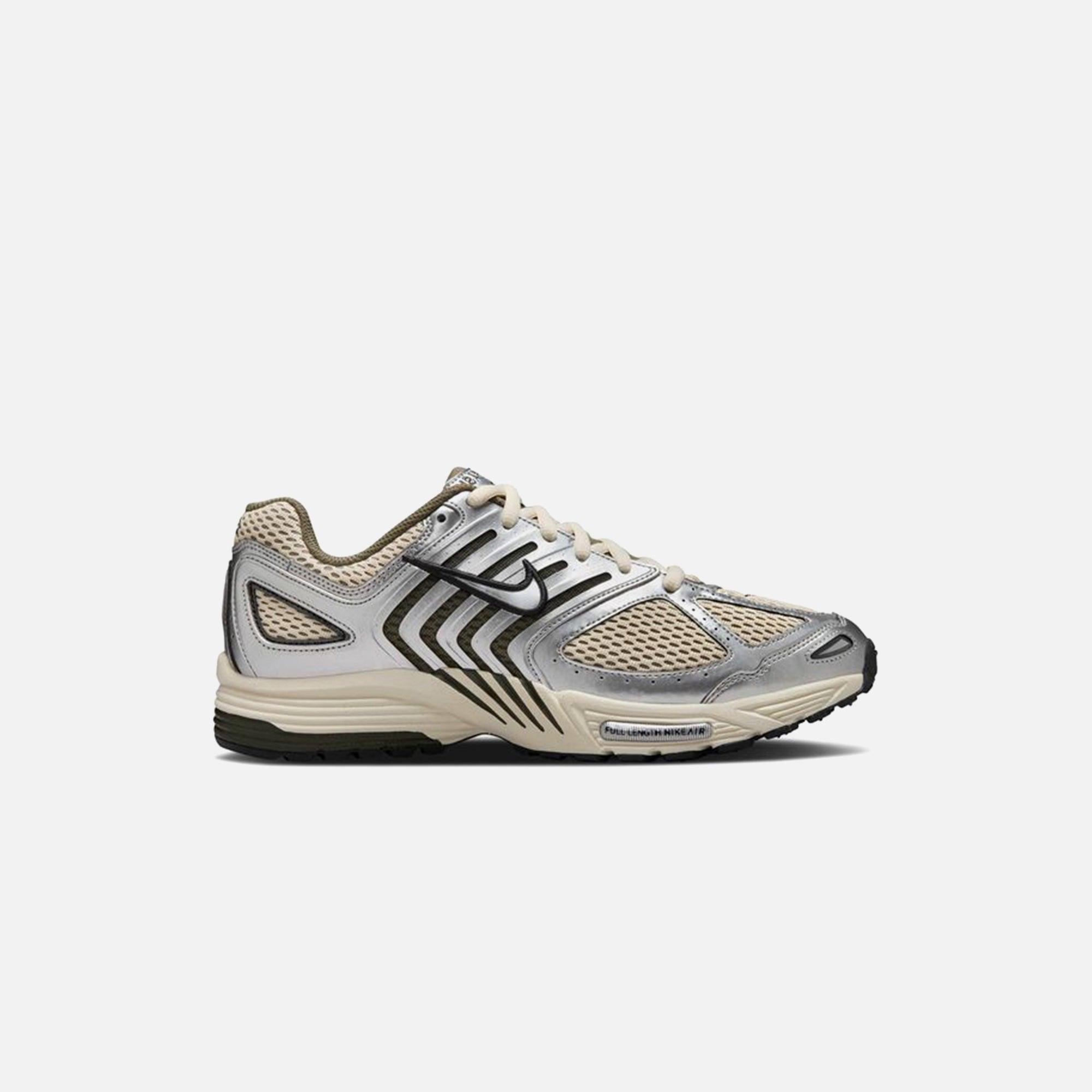 Air Pegasus 2K5 silhouette Mesh upper Leather overlays Padded collar Swoosh on side panels Air Peg 2K5 patch embordered on tongue Flat-woven laces Foam midsole Rubber outsole Style: nkhv5748-234 Color: Light Khaki / Metallic Silver Material: Mesh / Leather