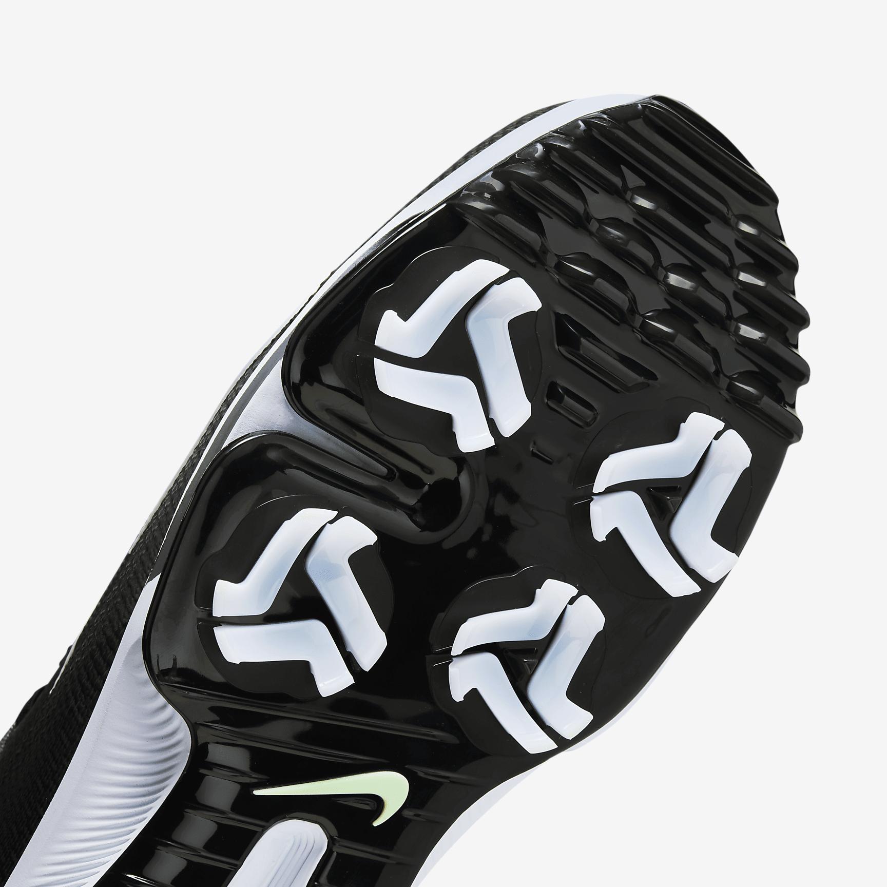 Shop Nike Air Zoom Infinity Tour 2 Rubber-trimmed Flyknit Golf Sneakers In Black from 600+ stores, starting at $128. The Infinity Tour 2 ups the ante from the previous iteration with more spikes, updated foam and a flattened Air Zoom unit. It's all in the name of swaggering strolls toward the pin as you point to where your ball just landed. With plenty of bounce and comfort, itâs game for wherever your next round takes you. Spike Up:We added two more integrated spikes in the forefoot, bringing the total to six for great grip. We placed the spikes under the Air Zoom unit to provide better energy return and added comfort throughout your round. Low and Stable:The Air Zoom unit is lower to the ground, offering you better stability without sacrificing responsiveness when marching from hole to hole. Stability for Swings:The updated midsole foam offers a different level of stability for a more consistent underfoot feel, helping keep you level when swinging for the green or walking down the middle of the fairway. Fly Upper:The upper is made of Nike Flyweave construction, which gives you lightweight strength and containment. The lightweight stretch skin in the upper helps keep water out and makes the shoe easier to clean. More Benefits:We upgraded the internal fit pods in the heel for comfort and security. Padded collar adds comfort. Product Details:2-year waterproof warranty. Cushioned insole. Style: FD0218; Color: Black/Vapor Green/Iron Grey/White; Size: 9.5; Gender: Male; Age Group: Adult | Nike Air Zoom Infinity Tour 2 Golf Shoes (Wide) in Black, Size: 9.5 | FD0218-002