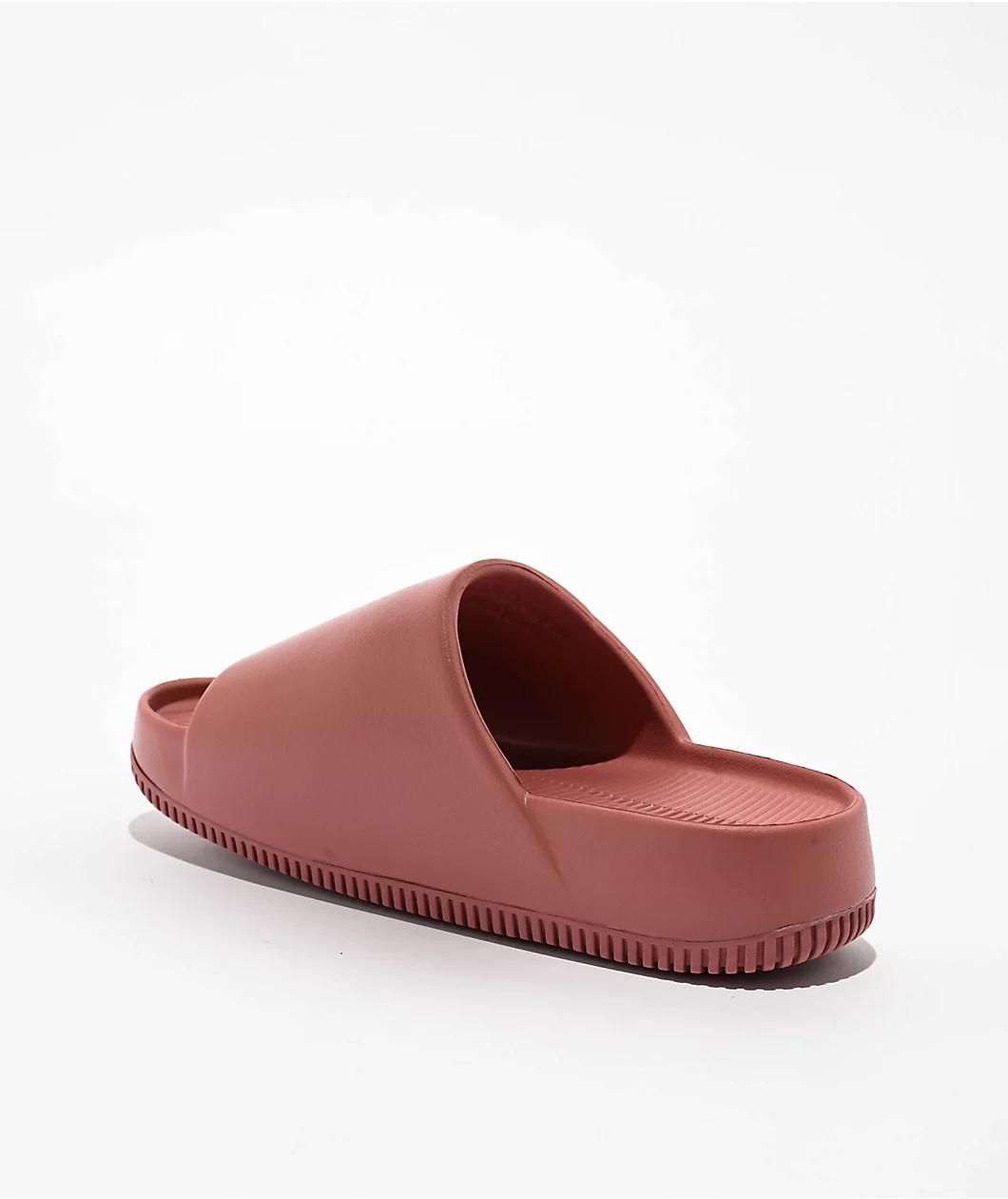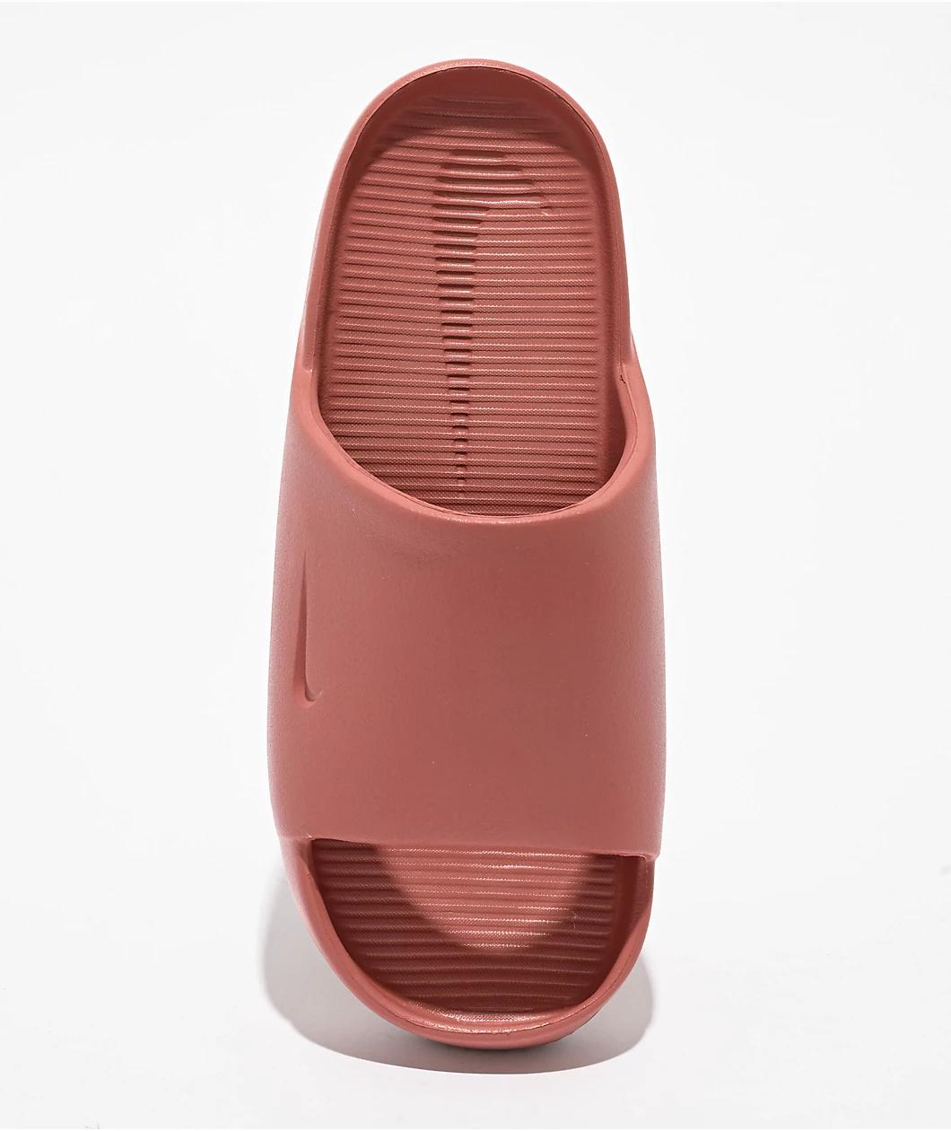 Enjoy a casual shoe with the Calm slide sandals from Nike, landing in a dark "Canyon Pink" colorway. The foam shoes are waterproof, making them perfect for days by the water or at the pool, yet comfortable and stylish enough to wear in the city. A de