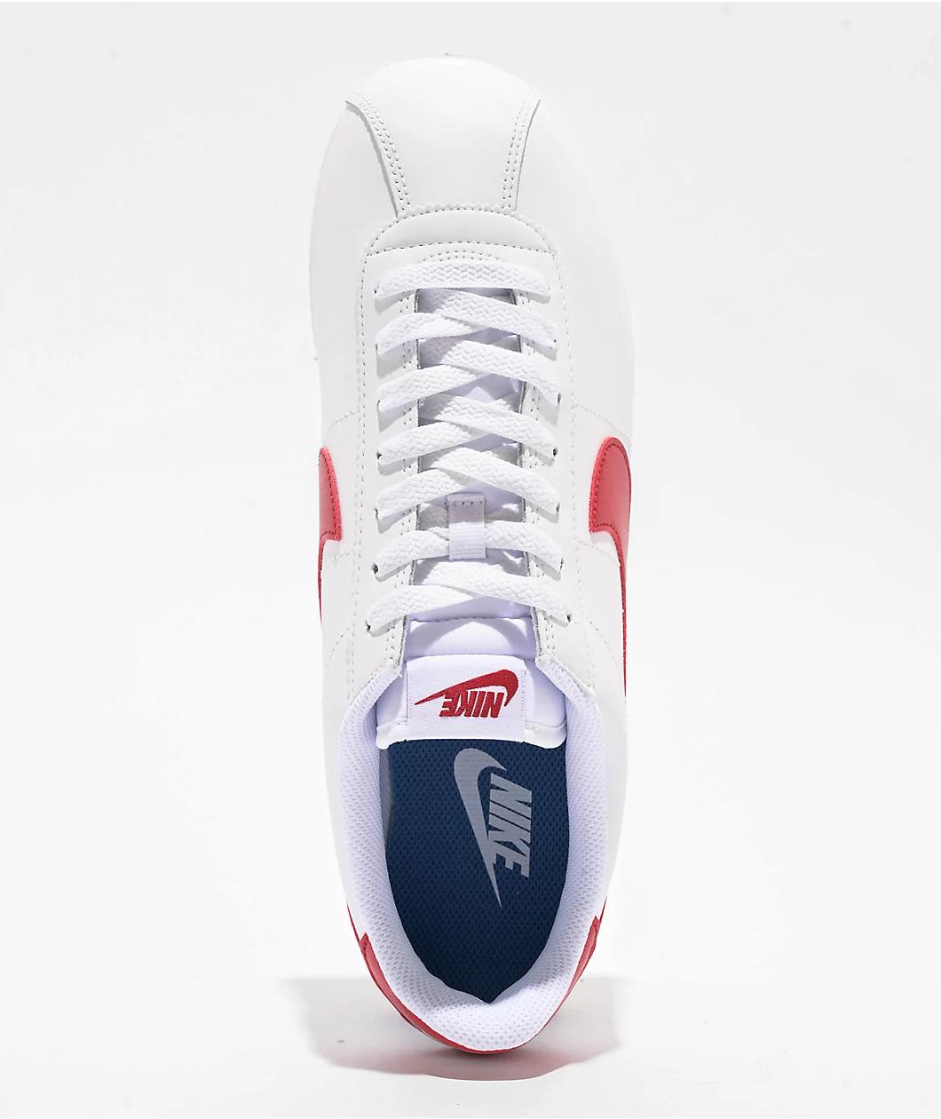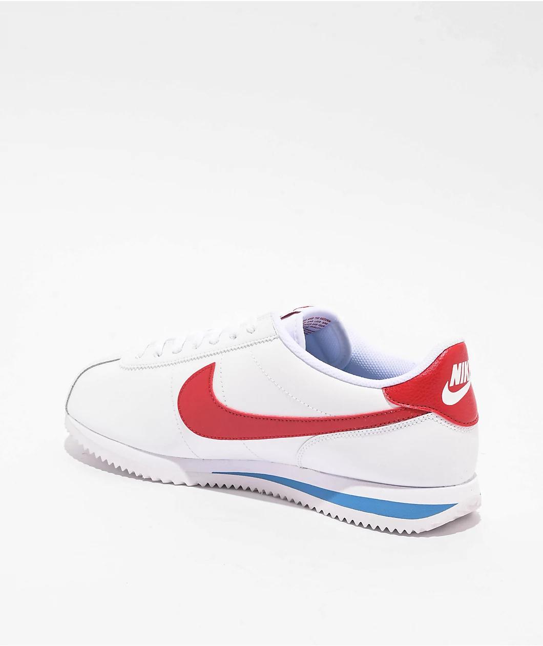 Arriving in a white, "Varsity Blue", and "Varsity Red" color scheme, the Cortez shoes from Nike deliver a prominent look. Made with durable leather uppers, these sneakers have a lightly padded collar and a foam midsole for comfort. Showcasing bold Ni