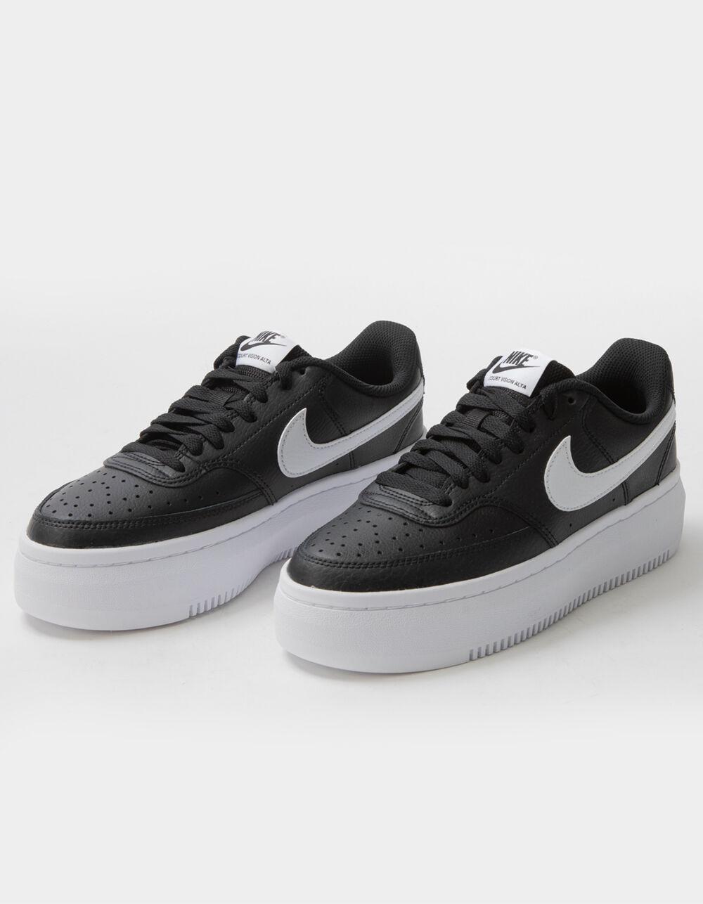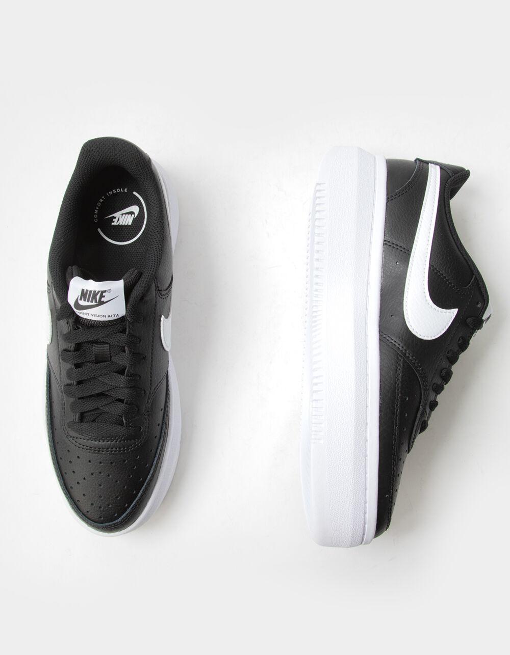 Nike Court Vision Alta Shoes. Raise the bar with the Nike Court Vision Alta. The modern design combines leather on top with the perfect lift underneath. The elevated hoops look then crowns your feet with its ultra plush tongue. Leather adds durability while perforations on the toe add an airy aesthetic. Lifted foam midsole and sculpted heel add modern comfort. Ultra-padded tongue feels incredibly soft. Traditional lacing. Imported.