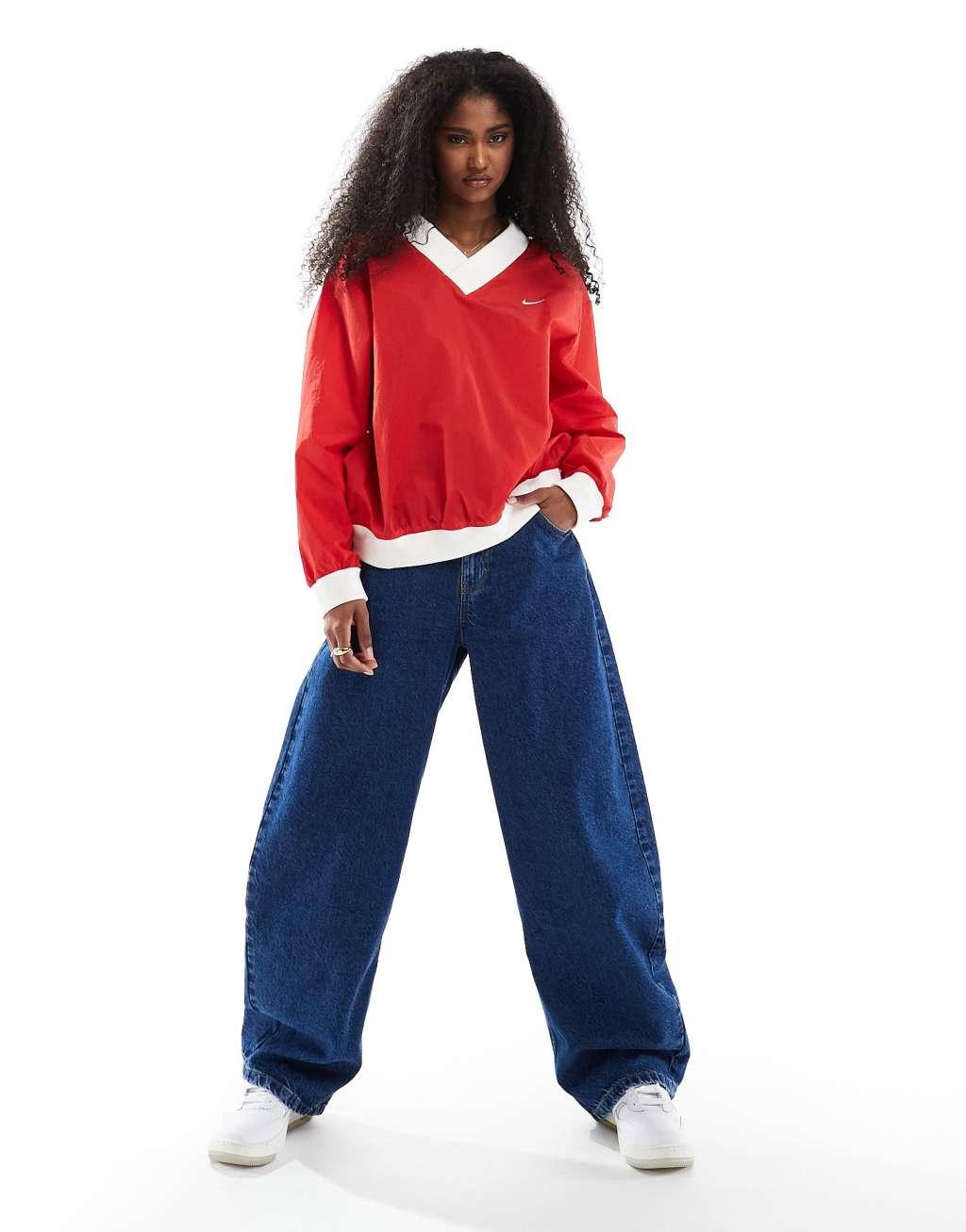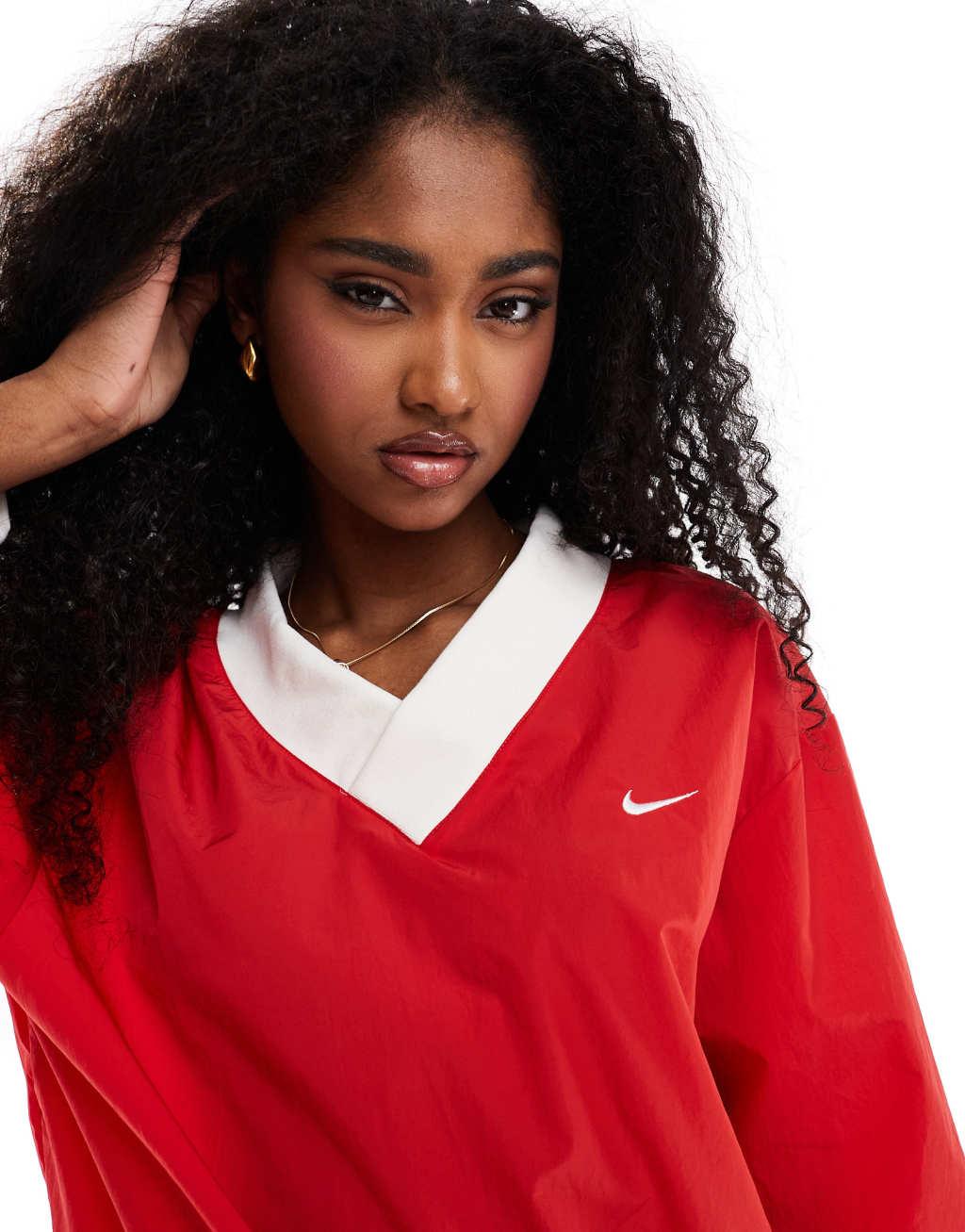 Nike Essential woven v-neck sweatshirt in red