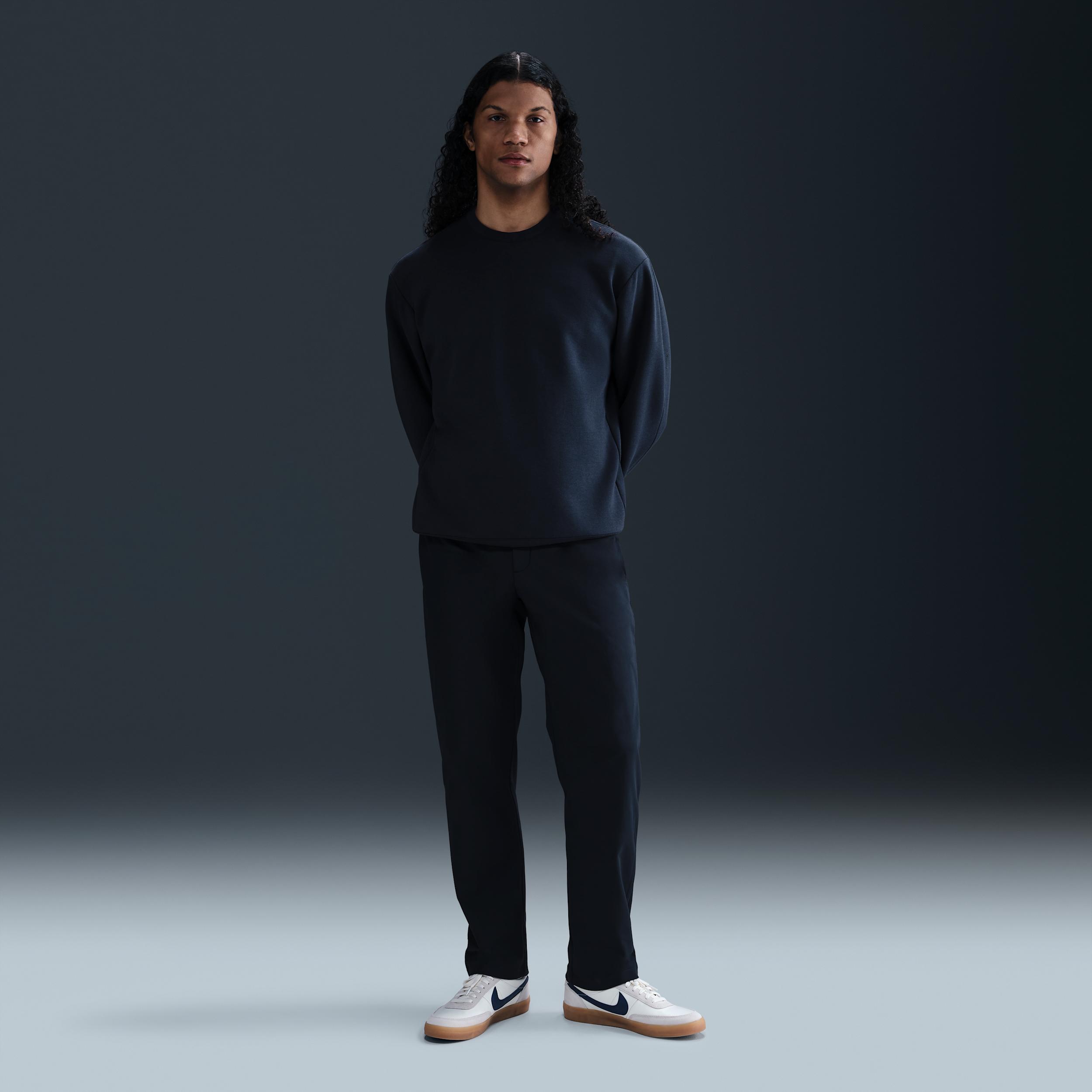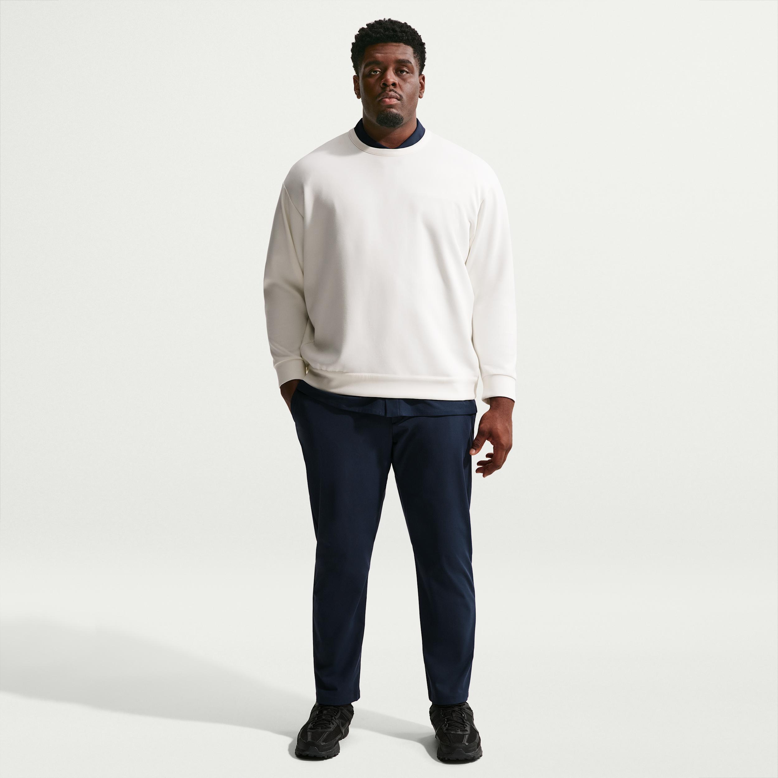 Made for all-day comfort, our PerfectStretch fabric has four-way stretch and a polished look. These straight-leg chinos put it to good use, adding plenty of storage and a locker loop for easy hanging. Sweat-Wicking Technology:Nike Dri-FIT technology moves sweat away from your skin for quicker evaporation, helping you stay dry and comfortable. Six-Pocket Design:A hidden zippered pocket inside the right-hand pocket fits most phones. A mesh drop-in pocket on the left side can hold small essentials. All pockets are stitched down inside to prevent shifting throughout the day. More Benefits:Elastic waistband and belt loops provide a secure fit. This product provides UVA and UVB protection from the sun in the areas covered by the garment. To protect exposed areas, the use of good quality sunscreen is recommended. Product Details:Signature locker loop at wearer's left waistband seam. Bonded belt loops. Front zipper with hook-and-bar closure. Body: 100% polyester. Pocket Bags: 86% polyester/14% spandex. Machine wash. Imported. Style: HQ6921; Color: Obsidian/Black/Dark Obsidian; Size: 40/32; Gender: Male; Age Group: Adult | Nike 24.7 PerfectStretch Men's Dri-FIT Regular Chino Pants in Blue, Size: 40/32 | HQ6921-451