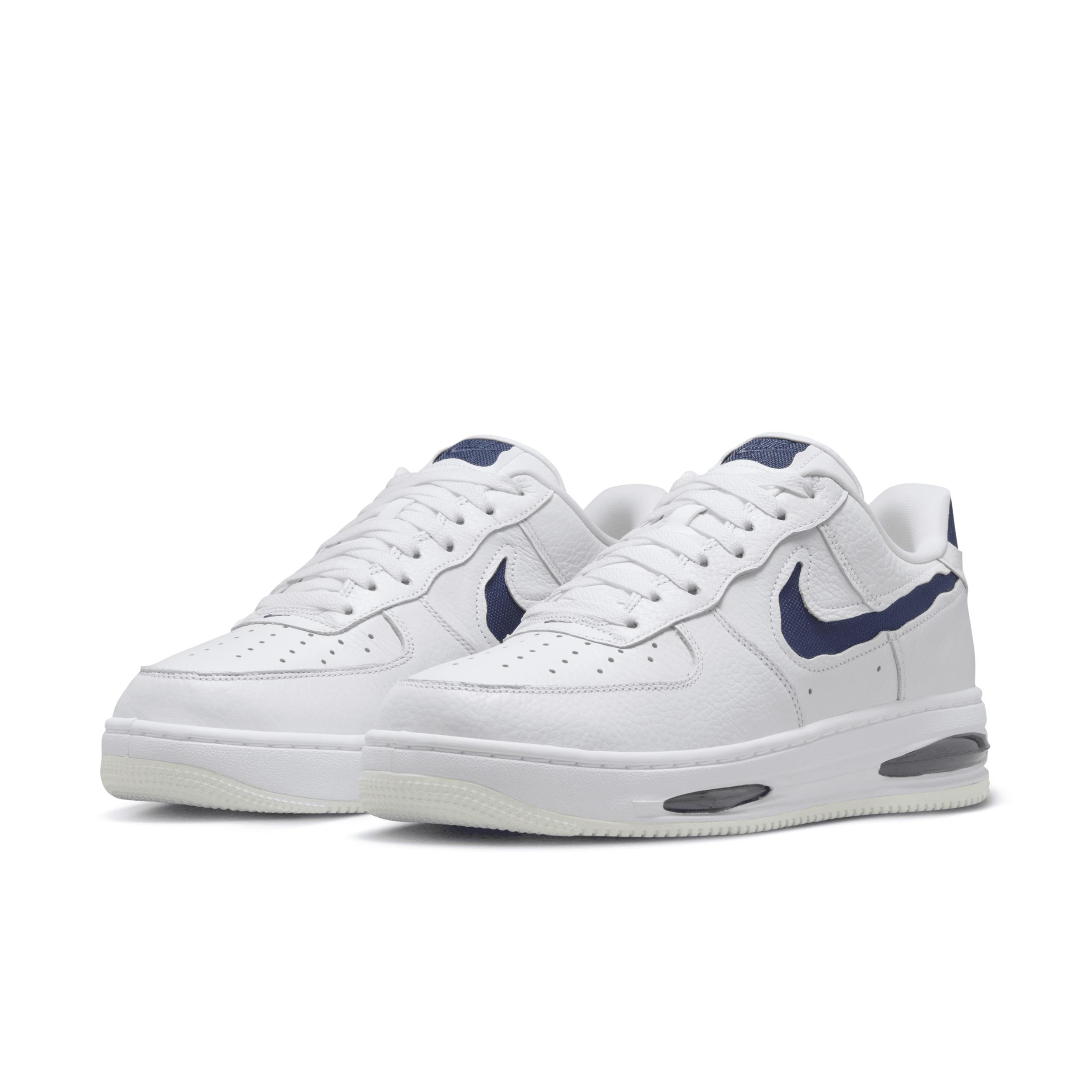 Comfortable, durable and timeless—it’s number 1 for a reason. Cutaway details expose a premium textile Swoosh logo and full-length Air units in the outsole, revealing the Air Force 1 in a new way. The classic ‘80s construction pairs with bold details for style that tracks whether you’re on court or on the go. Benefits:Leather upper with textile accents creates a classic look that’s built to last. Originally designed for performance hoops, visible Air cushioning delivers lasting comfort. Rubber outsole with heritage hoops pivot circles adds traction and durability. Padded, low-cut collar looks sleek and feels great. Style: HF3630; Color: White/Summit White/Midnight Navy; Size: 9.5; Gender: Male; Age Group: Adult | Nike Air Force 1 Low EVO Men's Shoes in White, Size: 9.5 | HF3630-102
