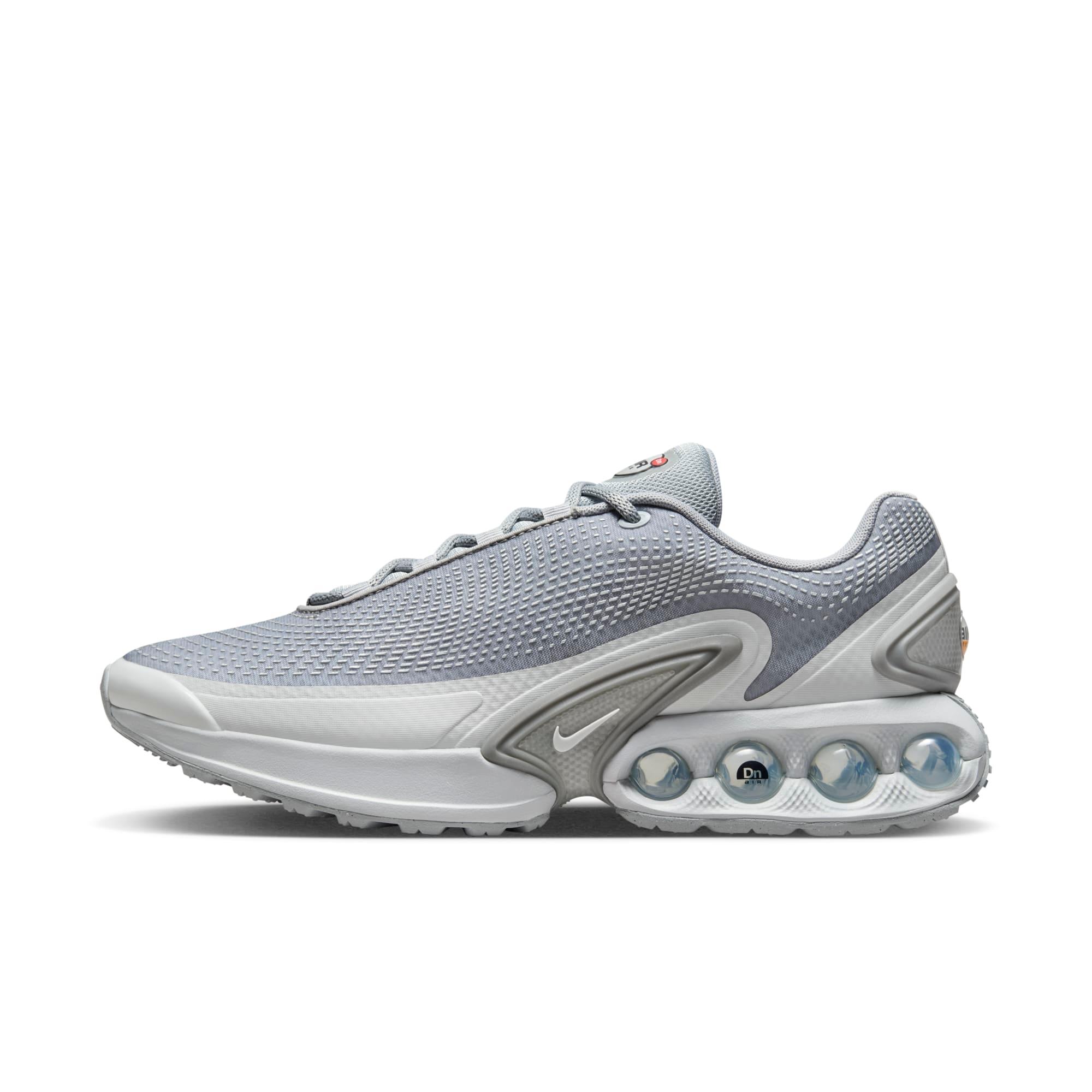 Say hello to the next generation of Air technology. The Air Max Dn features our Dynamic Air unit system of dual-pressure tubes, creating a reactive sensation with every step. This results in a futuristic design thatâs comfortable enough to wear from day to night. Go aheadâFeel the Unreal. Maxxed Out Motion:Our Dynamic Air unit system features 2 sets of dual-pressure tubes. With the firmest amount of pressure in the heel and the softest amount of pressure toward your midfoot, the air levels shift within each set for a smooth transition as you step. Maxxed Out Comfort:Multilayered mesh on the upper feels lightweight and breathable, with a haptic print for a textured look. Plush foam surrounds the cushioning system for an enhanced feel that's uniquely soft and supportive. Maxxed Out Energy:Providing comfort from top to bottom, this tactile design boasts performance-level bounce to energize your every move. After all, who said going to a concert isnât a sport? Product Details:Matte accents. Foam midsole. Rubber outsole. Not intended for use as Personal Protective Equipment (PPE). Style: DV3337; Color: Wolf Grey/Sky Grey/Pure Platinum/Pure Platinum; Size: 10.5; Gender: Male; Age Group: Adult | Nike Air Max Dn Shoes in Grey, Size: 10.5 | DV3337-007
