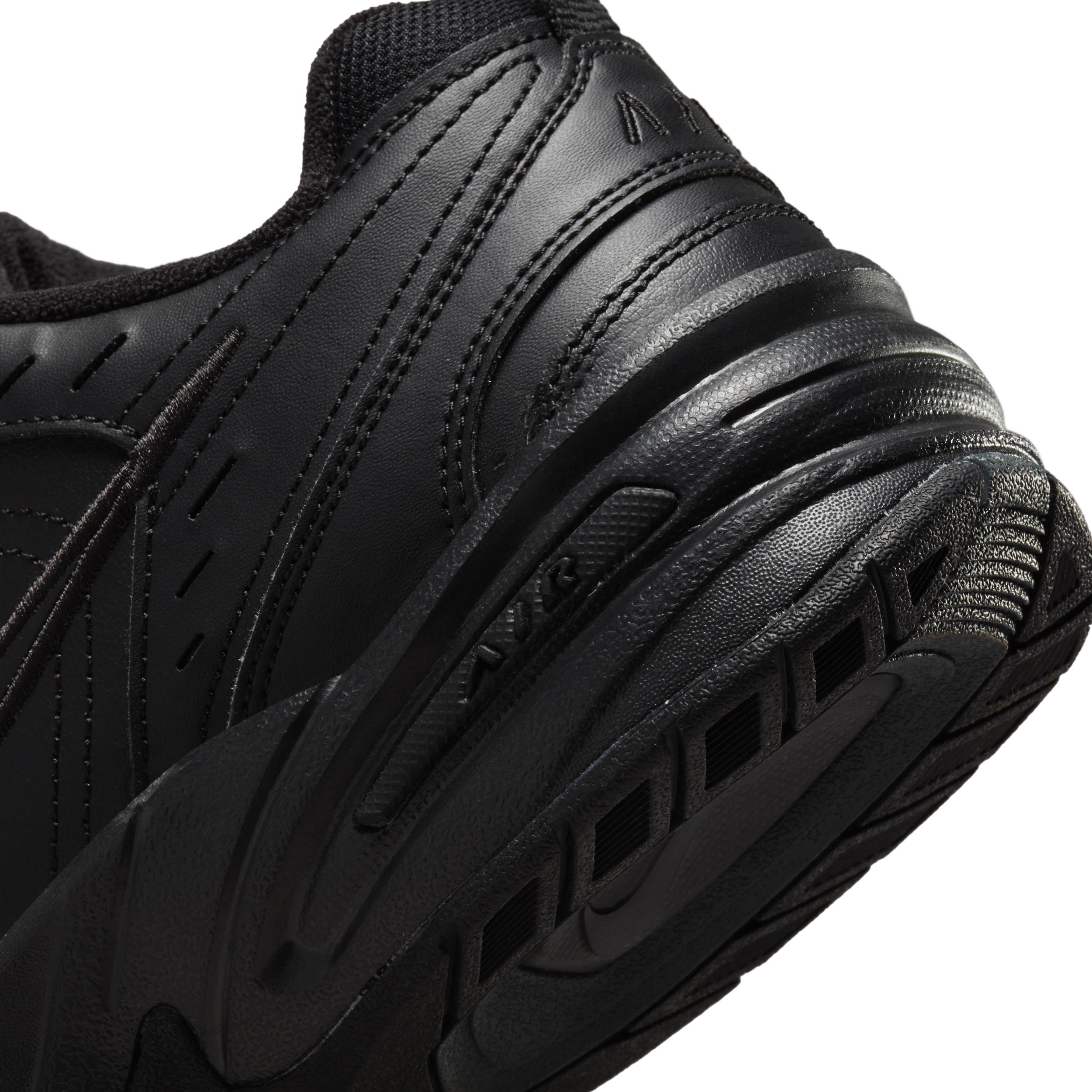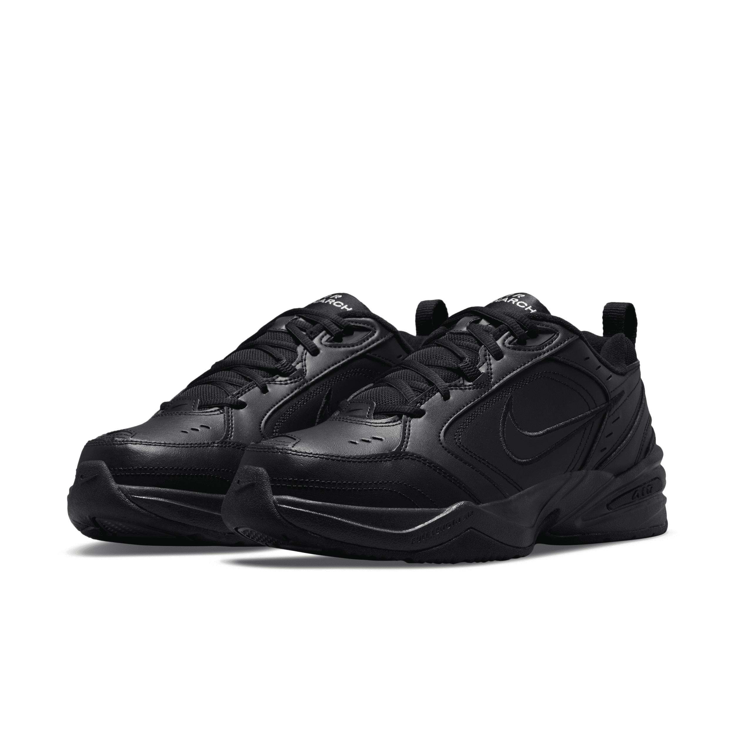Sizing Information Mens extra wide width 4E Product Features Synthetic and mesh upper with leather overlays Weight: 15 ounces Full-length Phylon foam cushioning underfoot Full-length Nike Air sole unit Rubber sole with multi-traction pattern and flex grooves The Air Monarch IV is imported. With the Nike Air Monarch IV Casual Shoes, your training just got a whole lot more comfortable. Featuring lightweight cushioning from the full-length Nike Air unit, these sneakers can stand up to hardcore training sessions and intense workouts. Size: 6.5. Color: Black. Gender: male. Age Group: adult. Nike Mens Air Monarch IV Casual Shoes (Wide Width 4E) in Black/Black Size 6.5 Leather