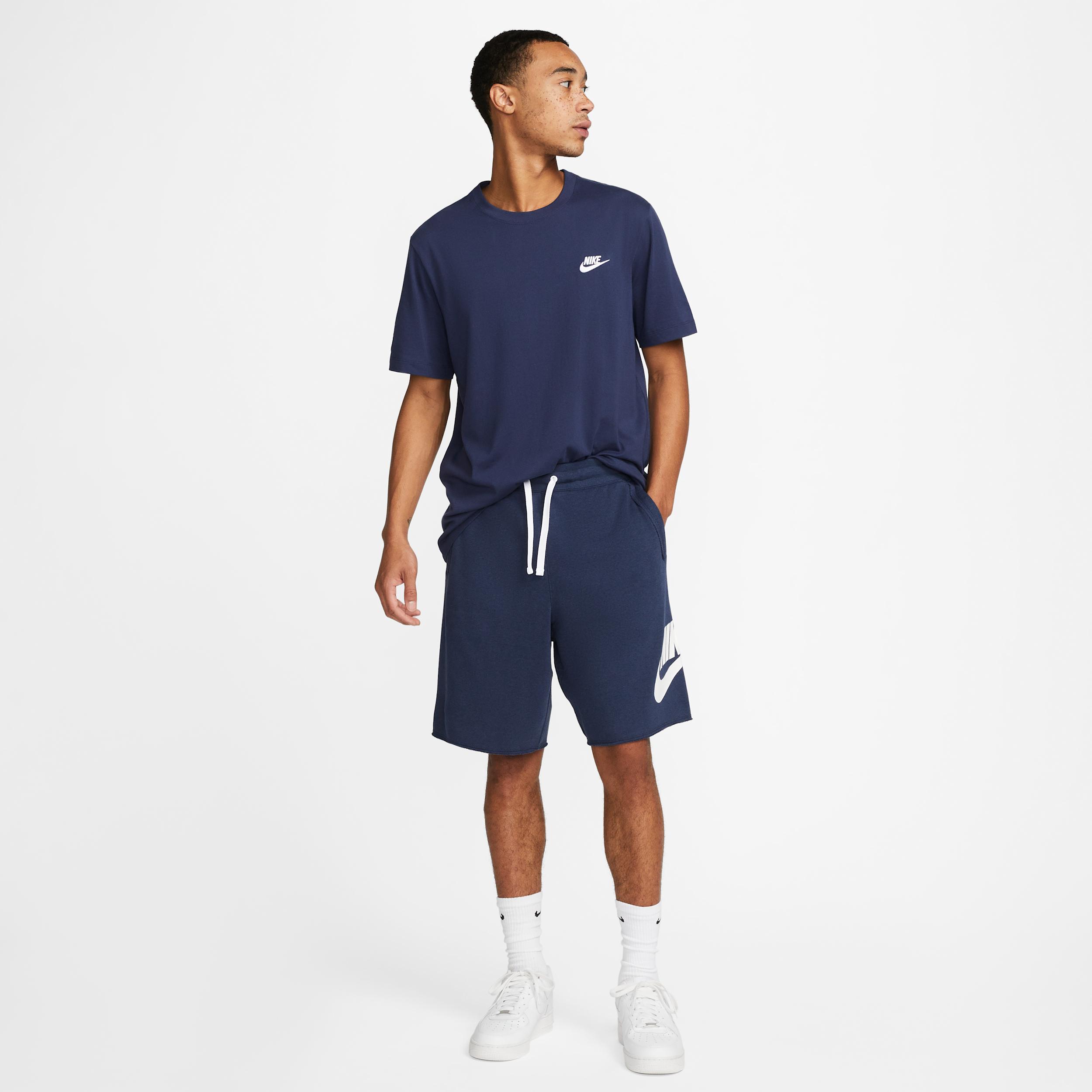 Size & Fit Standard fit is athletic and relaxed Designed to hit at the knees Product Features Soft and lightweight French terry fabric for comfort Printed Nike Futura logo on the left thigh for signature style Exposed raw edges at the pocket openings for a vintage finish Side hand pockets and a back pocket for small-item storage Elastic waistband with drawcord for a personalizable fit 58% cotton, 23% rayon, 19% polyester Machine wash The Nike Club Alumni Graphic French Terry Shorts are imported. Slip into superb casual, daily comfort with the Mens Nike Club Alumni Graphic French Terry Shorts. A relaxed fit and luxe French terry material drapes you in unbelievable coziness with signature Nike visual hits for the perfect pair whether kicking back on the couch or cruising around campus. Color: Blue. Gender: male. Age Group: adult. Pattern: Printed/Graphic. Material: Cotton/Polyester/Rayon. Nike Mens Club Alumni Graphic French Terry Shorts in Blue/Midnight Navy Size Small Cotton/Polyester/Rayon