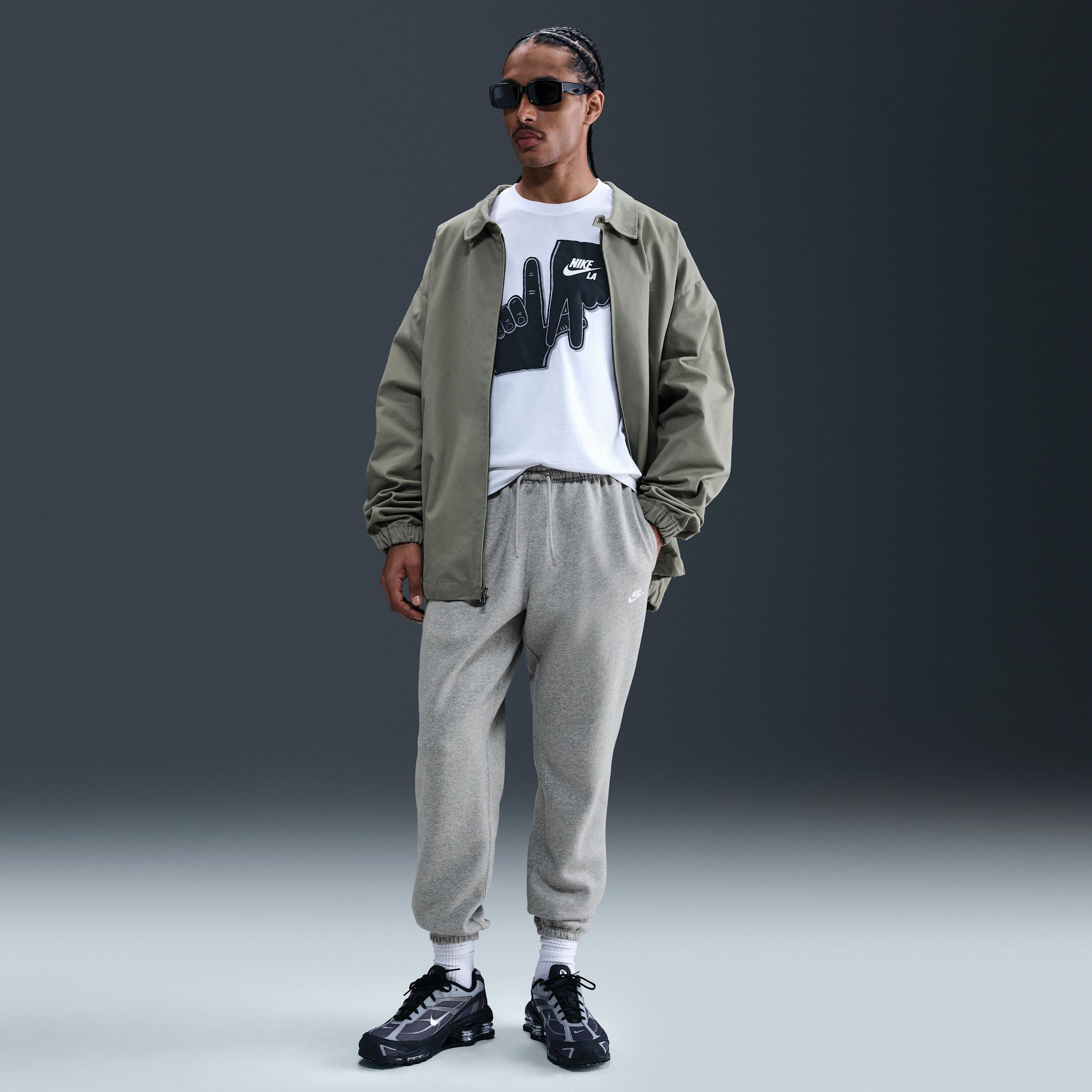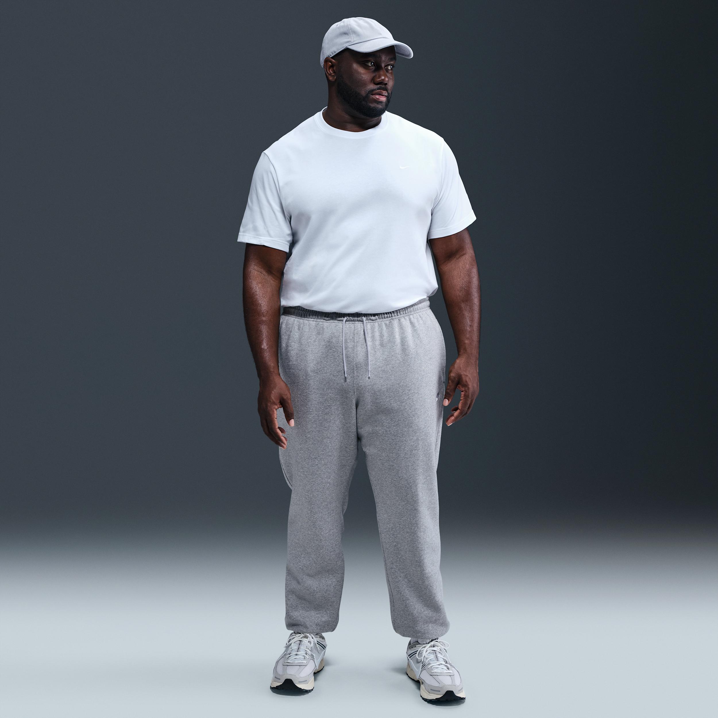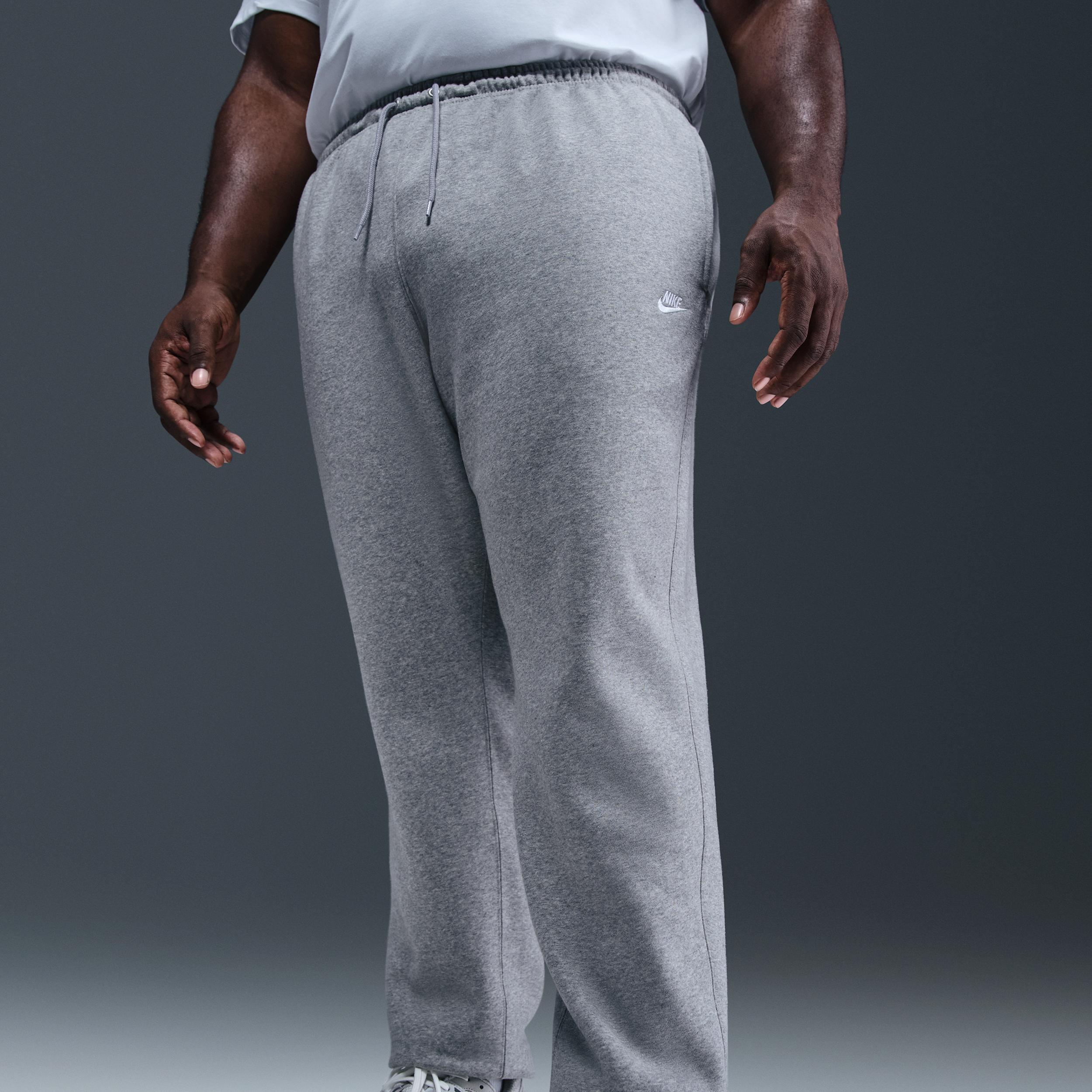 Clean meets casual with these classic sweats. Our midweight brushed fleece feels extra soft on the inside and smooth on the outside. Benefits:The standard fit feels relaxed through the seat and thighs, and tapers towards the ankle. An elastic waistband and external drawcord deliver a comfortable, custom fit at your waist. The snap closure back pocket and hand pockets fit most phones. Product Details:Embroidered Nike Futura logo. Body: 80-81% cotton/19-20% polyester. Side pocket knuckle side/Back pocket: 100% cotton. Material percentages may vary. Check label for actual content. Machine wash. Imported. Style: FN3808; Color: Dark Grey Heather/Light Smoke Grey/White; Size: 4XL; Gender: Male; Age Group: Adult | Nike Club Men's Cuffed Brushed Fleece Pants in Grey, Size: 4XL | FN3808-063