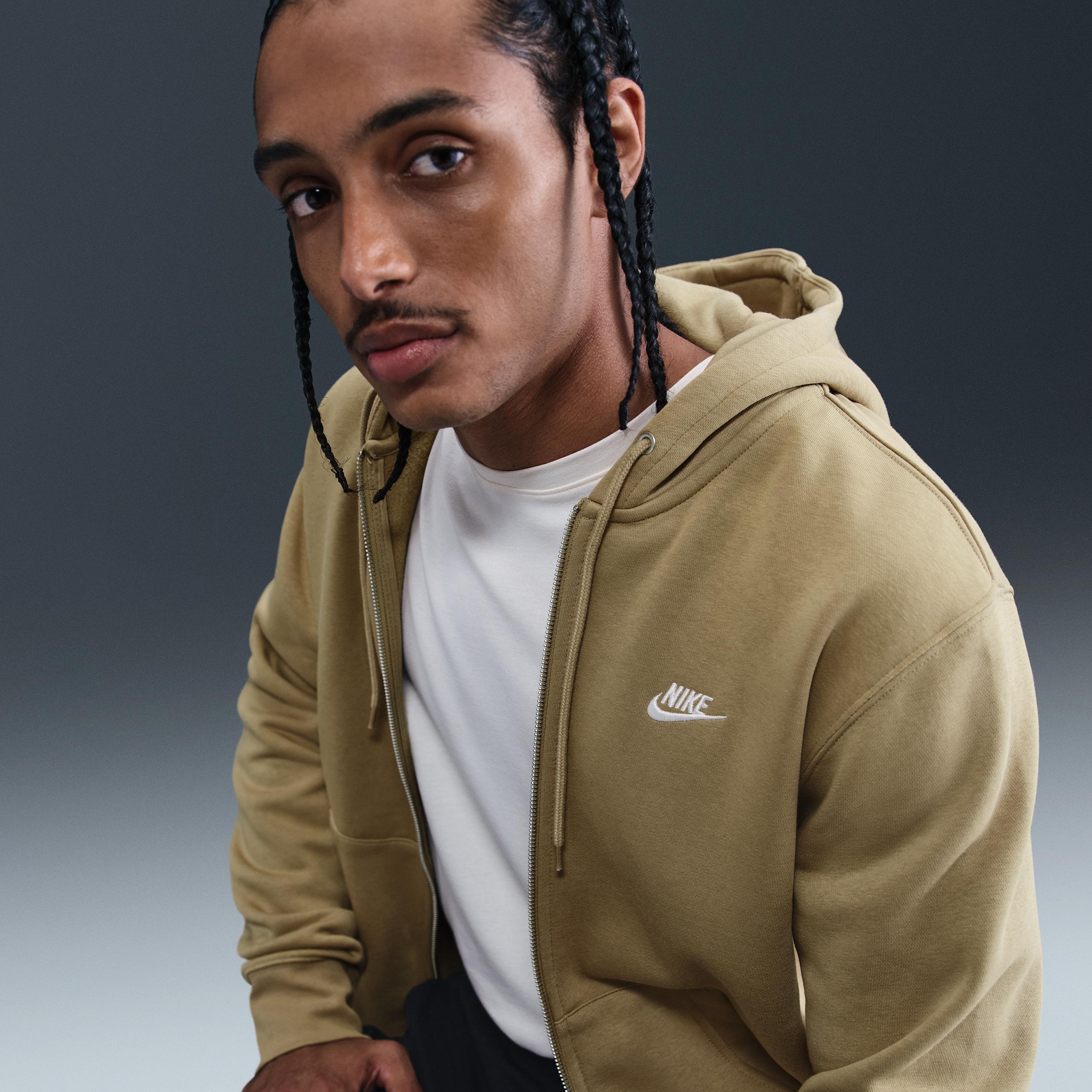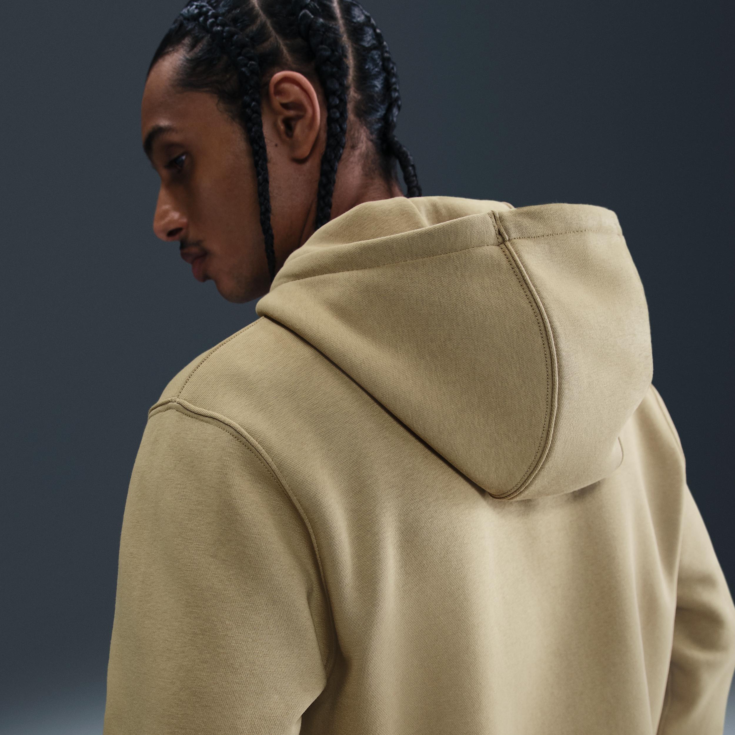 Clean meets casual with this classic hoodie. Smooth on the outside, super soft on the inside, this brushed fleece sweatshirt delivers comfort you can count on. Benefits:Our midweight brushed fleece feels extra soft on the inside and smooth on the outside, helping you stay cozy while keeping its structured shape. The standard fit is designed to feel relaxed through the body for easy layering. Double-layer hood has a round braided drawcord to make finding the right fit a cinch. [] Product Details:Embroidered Nike Futura Logo. Divided pouch pocket. Ribbed hem and cuffs. Metal Zipper. Body:67-80% cotton/20-33% polyester. Hood lining:67-80% cotton/20-33% polyester. Material percentages may vary. Check label for actual content. Machine wash. Imported. Style: FN3861; Color: Parachute Beige/Parachute Beige/White; Size: M Tall; Gender: Male; Age Group: Adult | Nike Club Men's Full-Zip Fleece Hoodie in Brown, Size: M Tall | FN3861-297