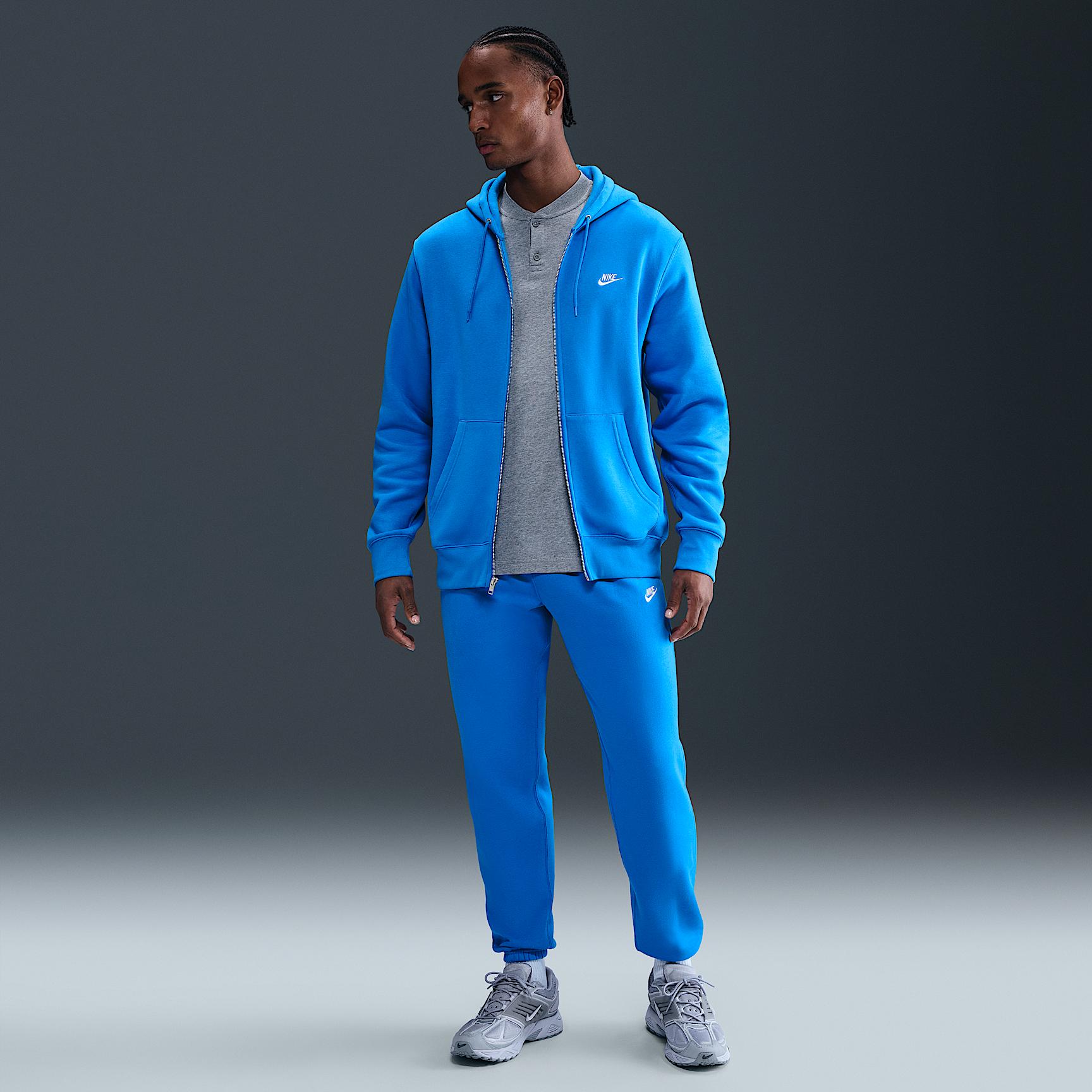 Clean meets casual with this classic hoodie. Smooth on the outside, super soft on the inside, this brushed fleece sweatshirt delivers comfort you can count on. Benefits:Our midweight brushed fleece feels extra soft on the inside and smooth on the outside, helping you stay cozy while keeping its structured shape. The standard fit is designed to feel relaxed through the body for easy layering. Double-layer hood has a round braided drawcord to make finding the right fit a cinch. [] Product Details:Embroidered Nike Futura Logo. Divided pouch pocket. Ribbed hem and cuffs. Metal Zipper. Body:67-80% cotton/20-33% polyester. Hood lining:67-80% cotton/20-33% polyester. Material percentages may vary. Check label for actual content. Machine wash. Imported. Style: FN3861; Color: Light Photo Blue/Light Photo Blue/White; Size: 2XL Tall; Gender: Male; Age Group: Adult | Nike Club Men's Full-Zip Fleece Hoodie in Blue, Size: 2XL Tall | FN3861-435
