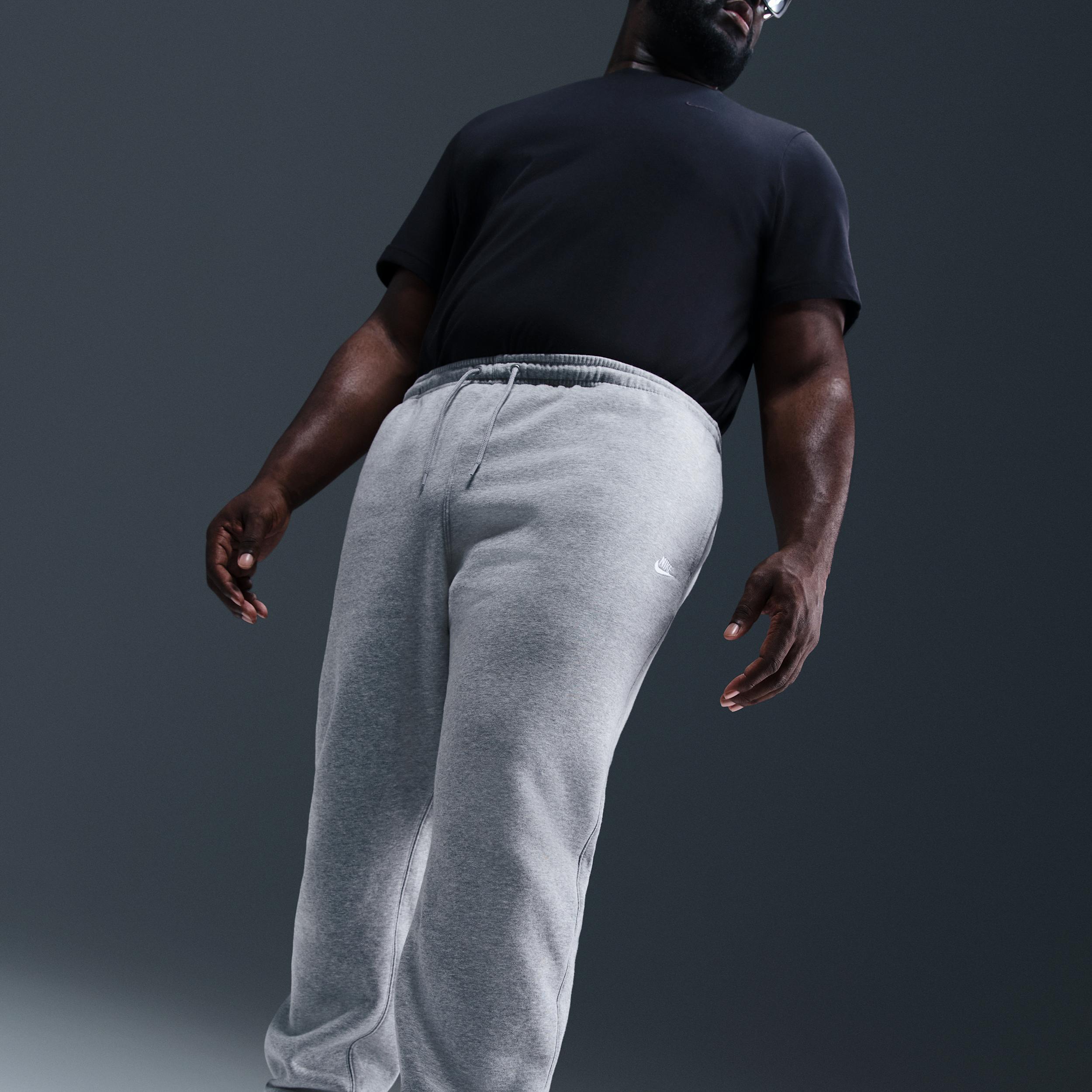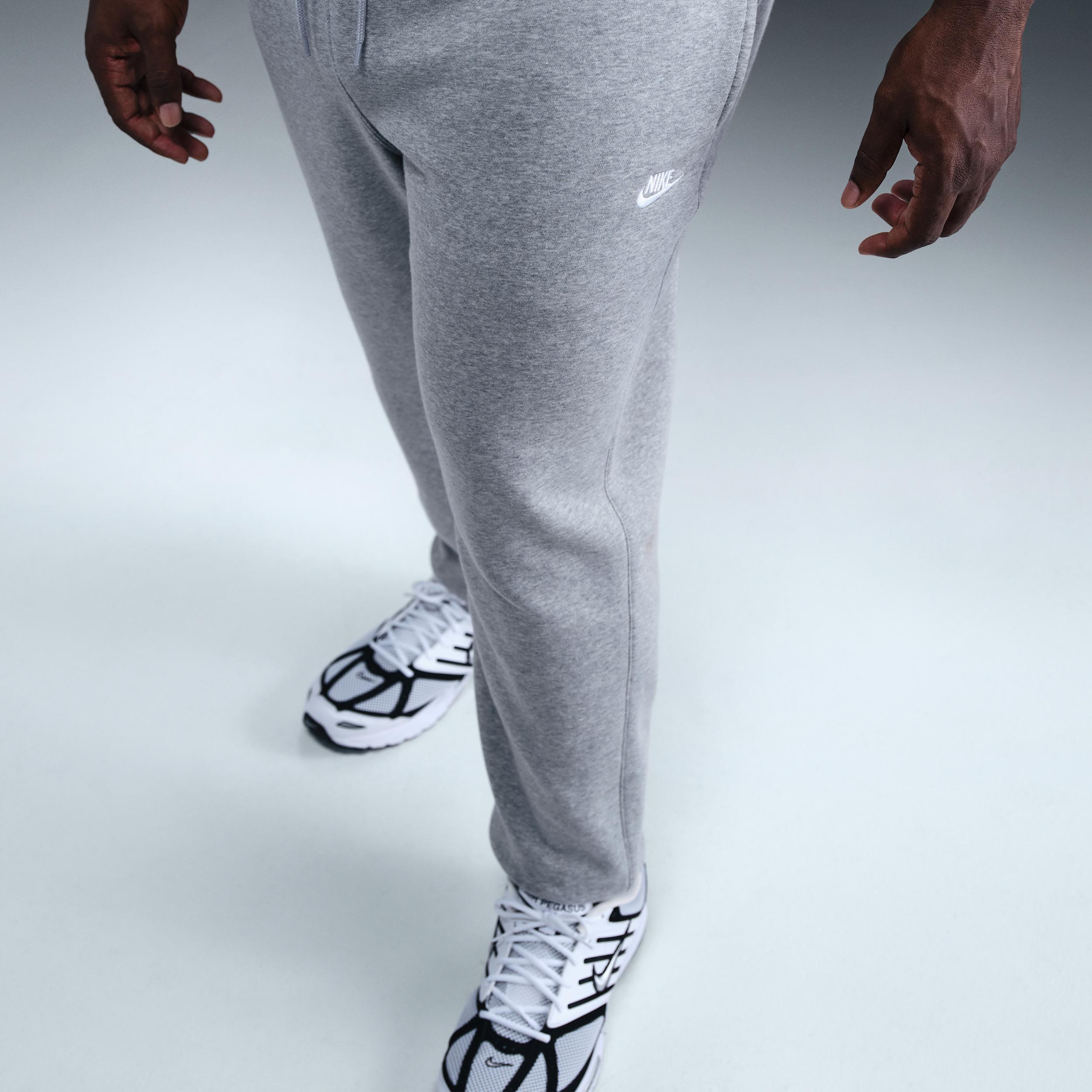 Clean meets casual with these classic joggers. Our midweight brushed fleece feels extra soft on the inside and smooth on the outside. Benefits:Their standard fit feels relaxed through the seat and thighs and tapers towards the ankle. An elastic waistband and external drawcord deliver a comfortable, custom fit at your waist. The snap closure back welt pocket and hand pockets fit most phones. Product Details:Embroidered Nike Futura logo. Body: 67-81% cotton/19-33% polyester. Side pocket knuckle side/Back pocket: 100% cotton. Material percentages may vary. Check label for actual content. Machine wash. Imported. Style: FN3787; Color: Dark Grey Heather/Light Smoke Grey/White; Size: XL Tall; Gender: Male; Age Group: Adult | Nike Club Mens Jogger Pants in Grey, Size: XL Tall | FN3787-063