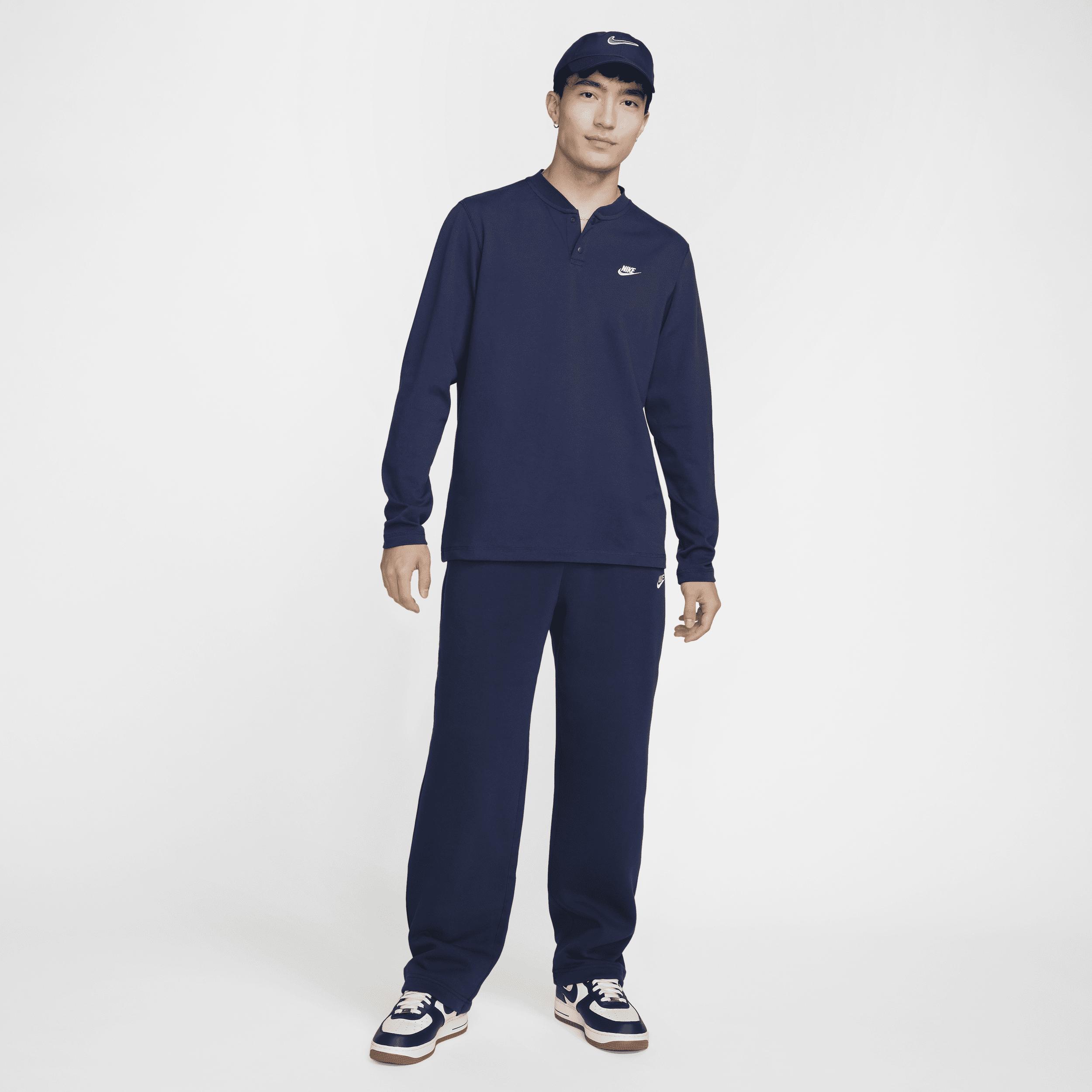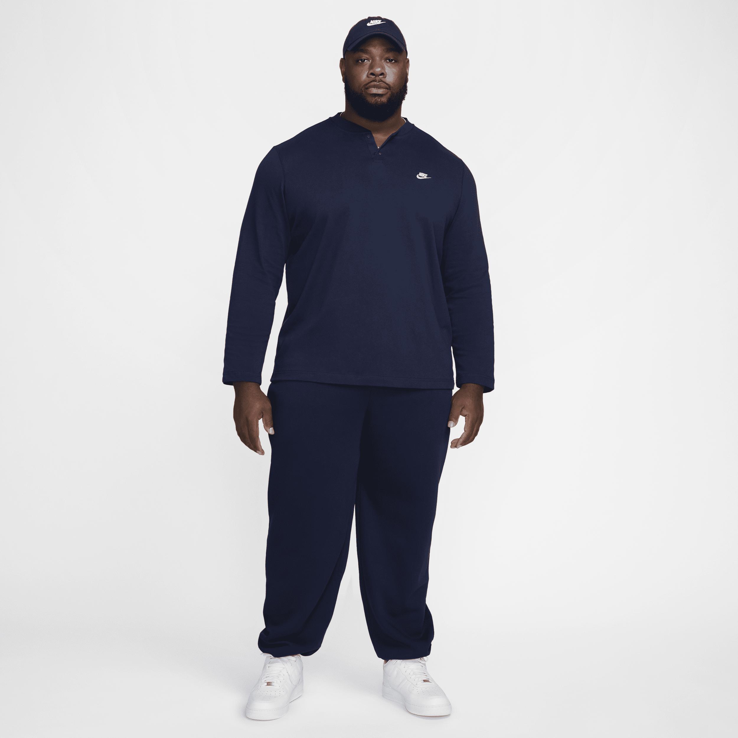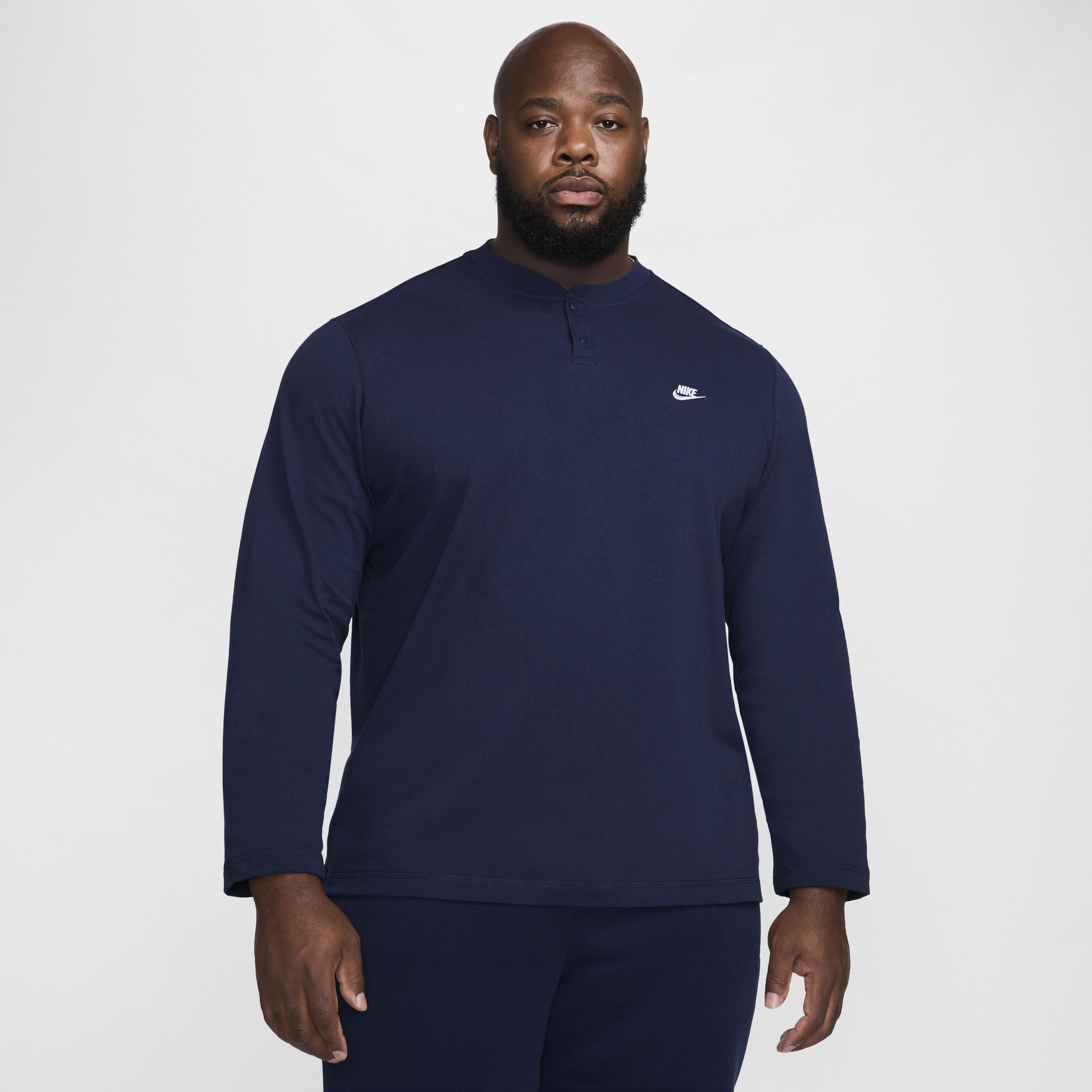 This classic 2-button henley is the perfect layering piece thanks to its relaxed fit through the body and sleeves. Midweight knit cotton feels soft and comfortable for easy daily wear. [] Product Details:100% cotton. Machine wash. Imported. Style: FZ6630; Color: Midnight Navy/Midnight Navy/White; Size: L; Gender: Male; Age Group: Adult | Nike Club Men's Long-Sleeve Henley in Blue, Size: Large | FZ6630-410