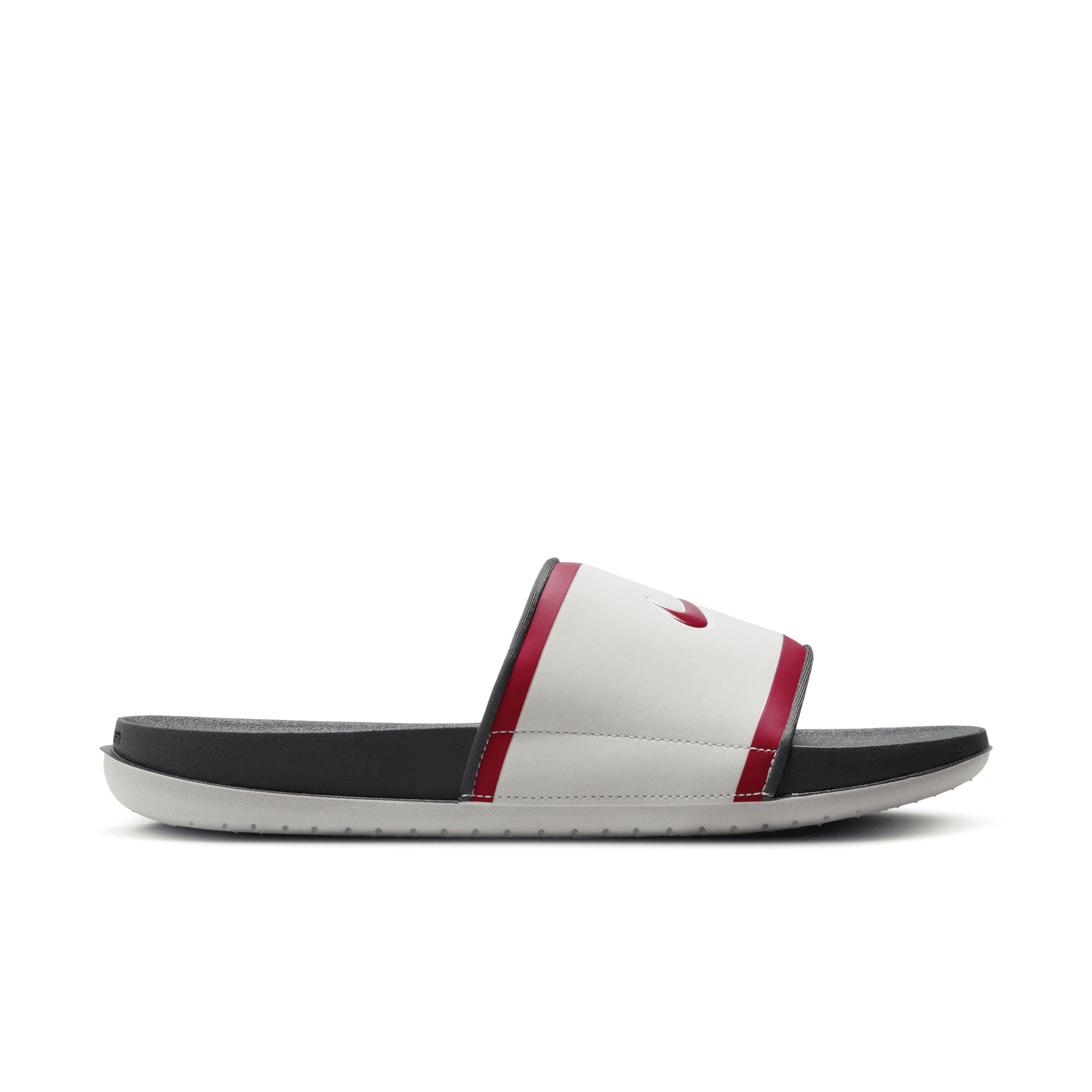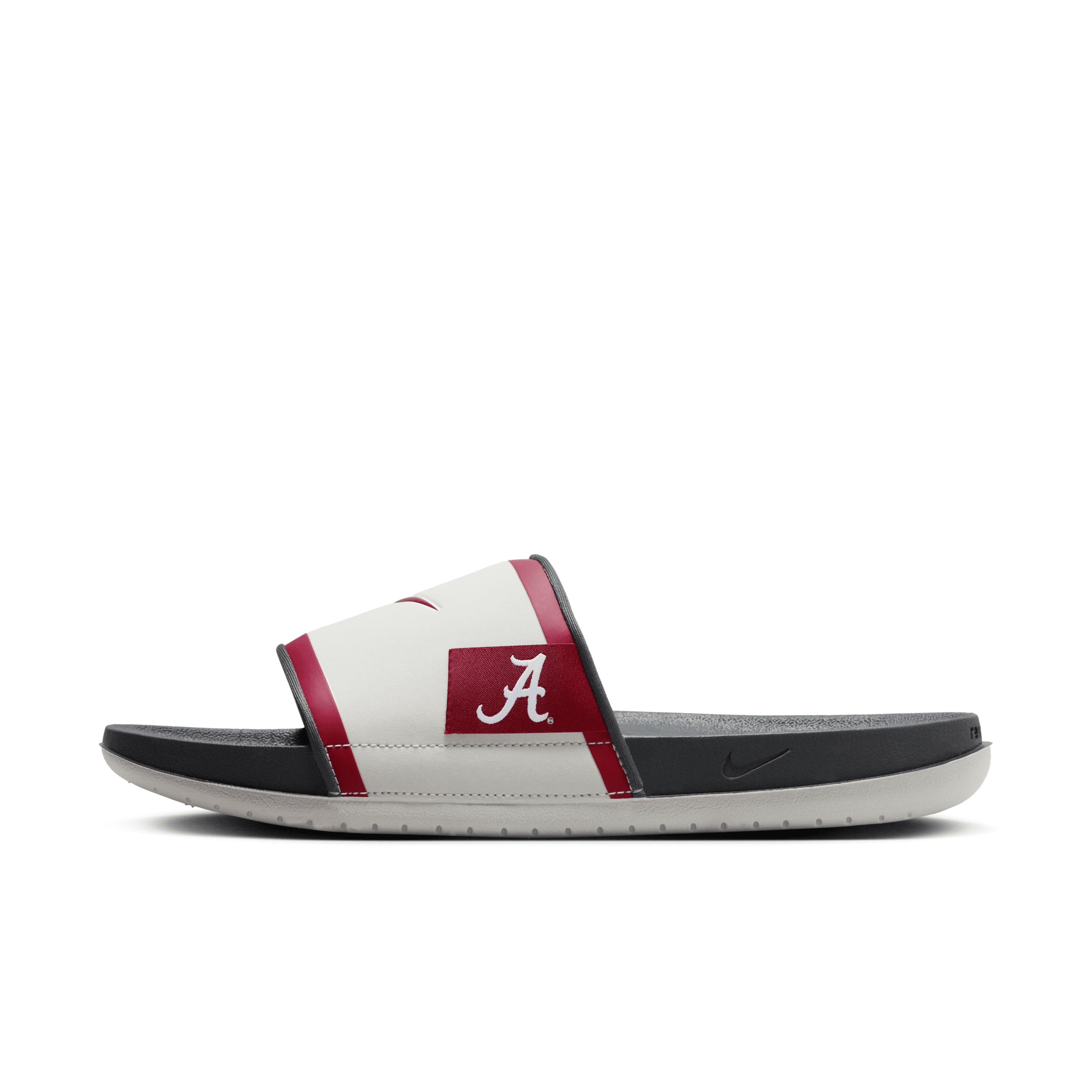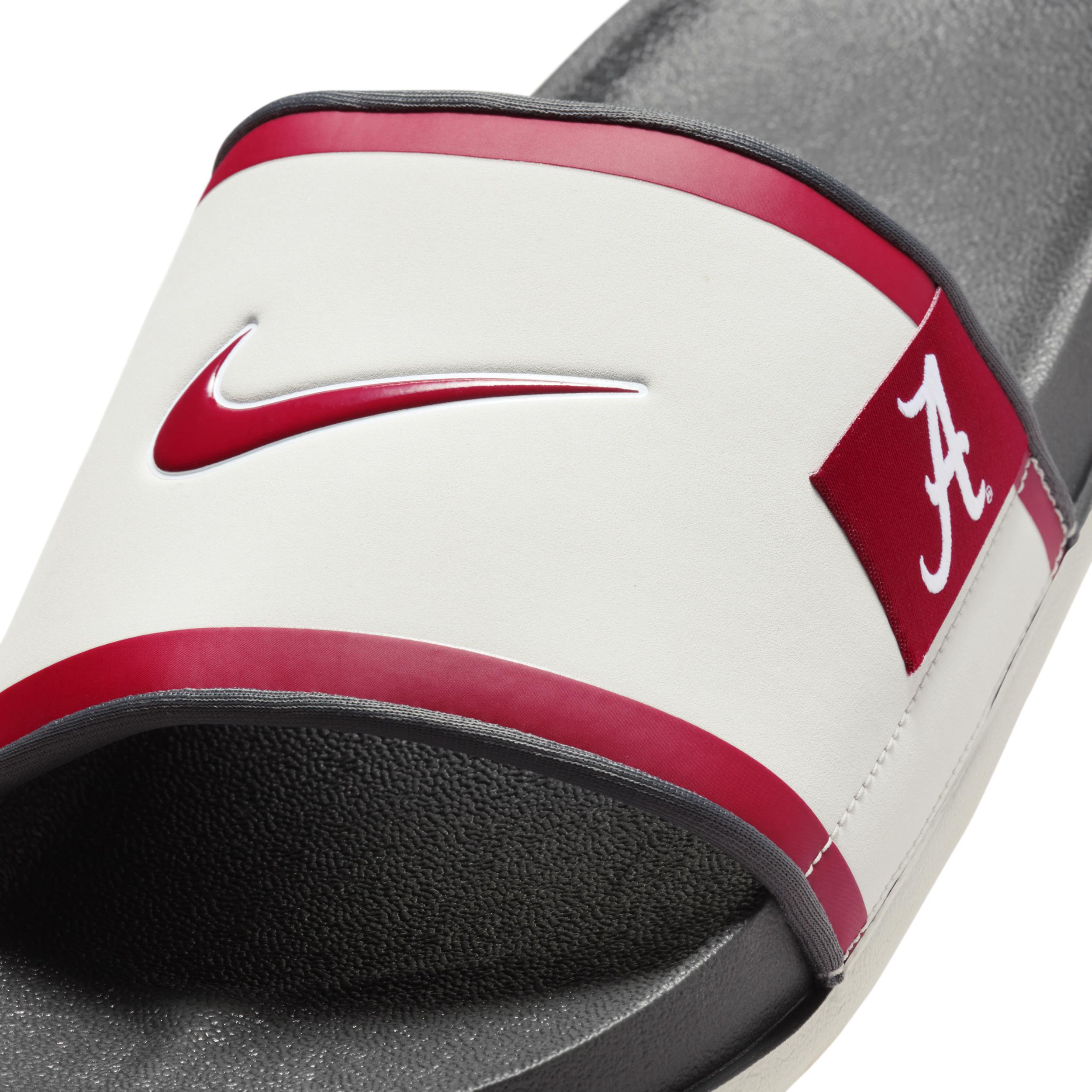Walk around comfortably in Alabama Crimson Tide style with these 2024 Off-Court Slide sandals from Nike. They feature bold brand and team graphics on the soft strap and dual-density foam to elevate both your devotion and comfort. The upper binding also provides a cushioned feel for additional support, making these sandals a must-have for any Alabama Crimson Tide fan.