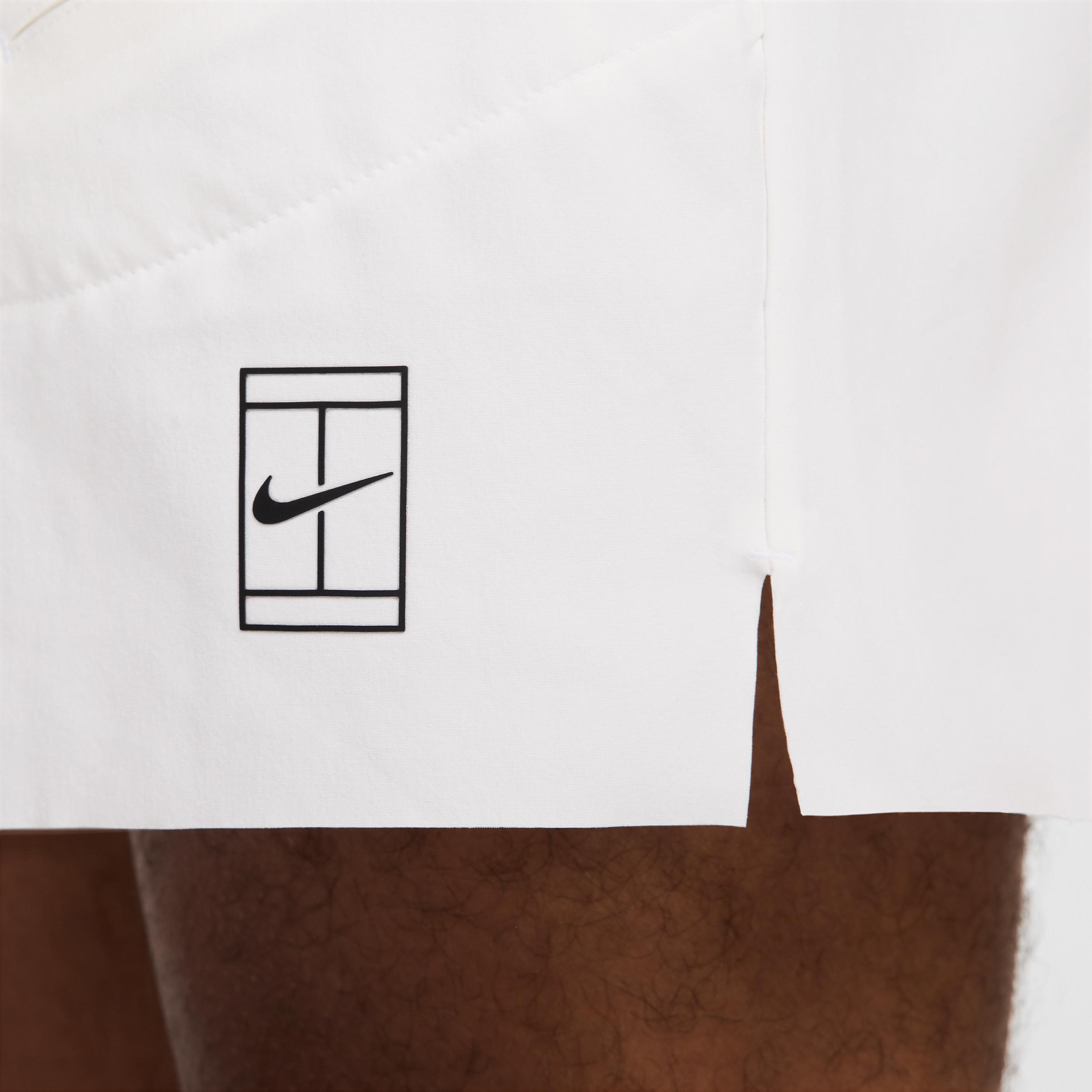 The 6" Advantage shorts are all about letting you play hard without having your clothing become a distraction. They're made from lightweight and breathable four-way stretch material. Special pockets that securely store tennis balls during play. Benefits:Nike Dri-FIT technology moves sweat away from your skin for quicker evaporation, helping you stay dry and comfortable. Stretchy woven material feels lightweight and breathable. Specially designed pockets let you stow tennis balls quickly and securely. Soft elastic waistband with drawcord provides a secure fit. Smooth hem finishes help to minimize chafing and distractions. Product Details:6" inseam. Side vents. NikeCourt logo. Body: 89% polyester/11% spandex. Pocket bag palm side: 100% polyester. Machine wash. Imported. Style: FZ6913; Color: White/Black; Size: XS; Gender: Male; Age Group: Adult | NikeCourt Advantage Men's Dri-FIT 6" Tennis Shorts in White, Size: XS | FZ6913-100